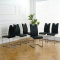 Modern Dining Chairs With Faux Leather Padded Seat Dining Living Room Chairs Upholstered Chair With Chrome Metal Legs Design For Kitchen, Living, Bedroom, Dining Room Side Chairs Set Of 6 Black