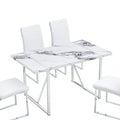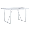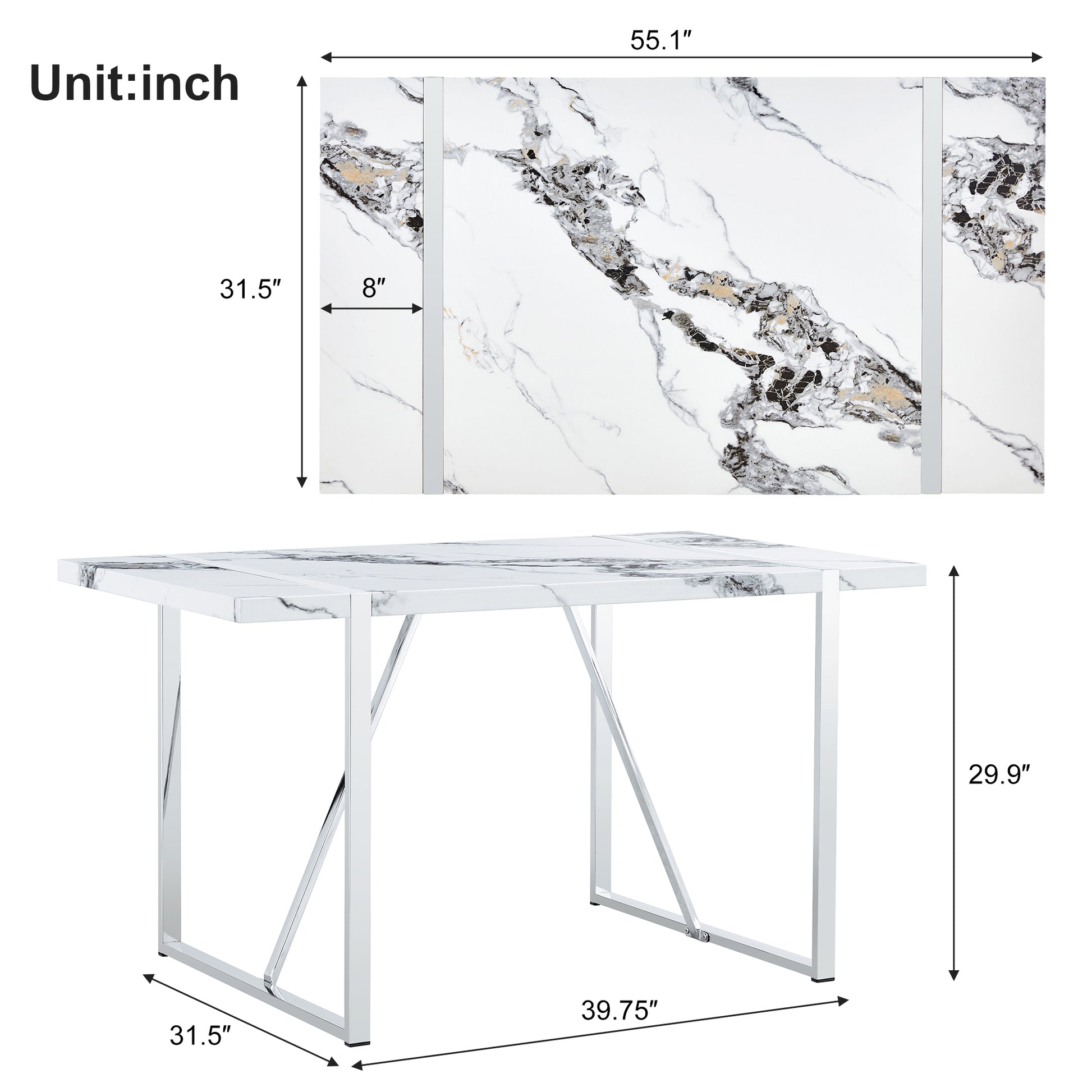 Modern Dining Table, 55 Inch Faux Marble Kitchen Table For 4 People, Rectangular Dinner Table For Dining Room, Home Office, Living Room Furniture, Easy Assembly, White & Silver Only Table White Wood