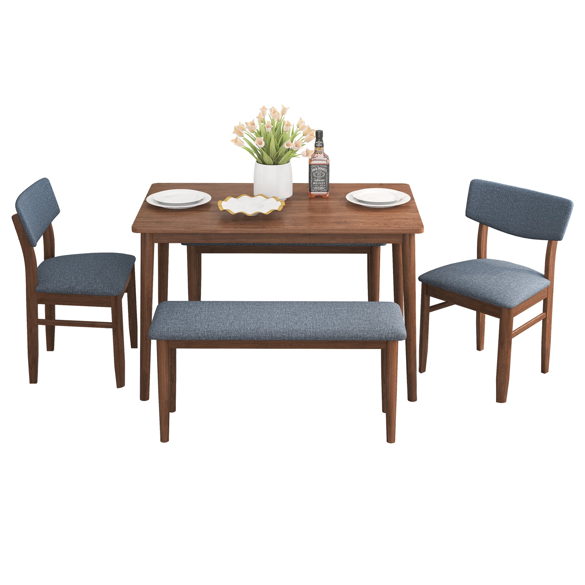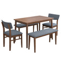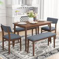 Modern Dining Table Set With 2 Benches And 2 Chairs Fabric Cushion For 6 All Rubber Wood Kitchen Dining Table For Dining Room Small Space Grey Walnut Rubber Wood