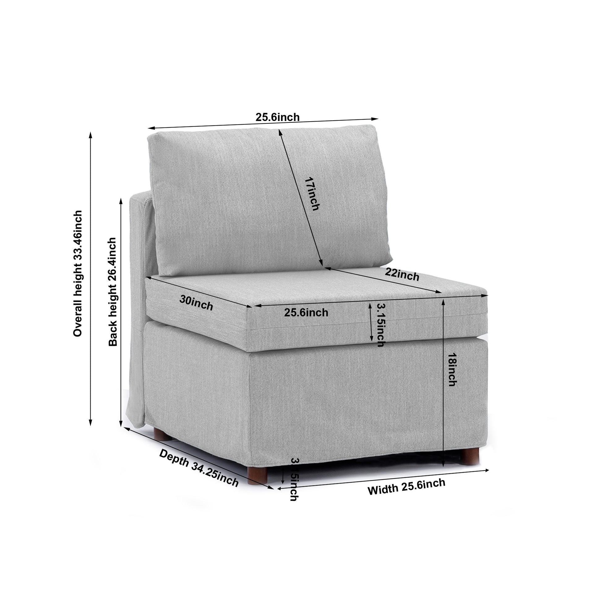 Modern Fabric Linen Middle Module For Modular Sofa Sectional Sofa Couch Accent Armless Chair, Cushion Covers Removable And Washable,Light Grey Light Grey Wood Primary Living Space Soft Cushion Back Modern Rubberwood Armless Foam Linen 1 Seat