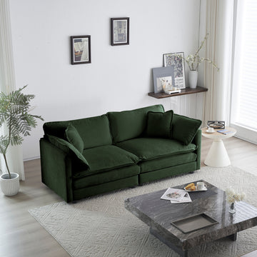 Modern Fabric Loveseat Sofa Couch For Living Room, Upholstered Large Size Deep Seat 2 Seat Sofa With 4 Pillows ,Green Chenille Green Chenille 2 Seat