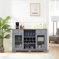Modern Farmhouse Buffet Cabinet, Sideboard With 2 Drawers And Elegant Glass Door Cabinets, Wine And Glass Rack, Coffee Bar For Kitchen, Dining Room, Light Blue And Light Oak, 56.46"W*15.55"D*35.74"H Light Blue Mdf