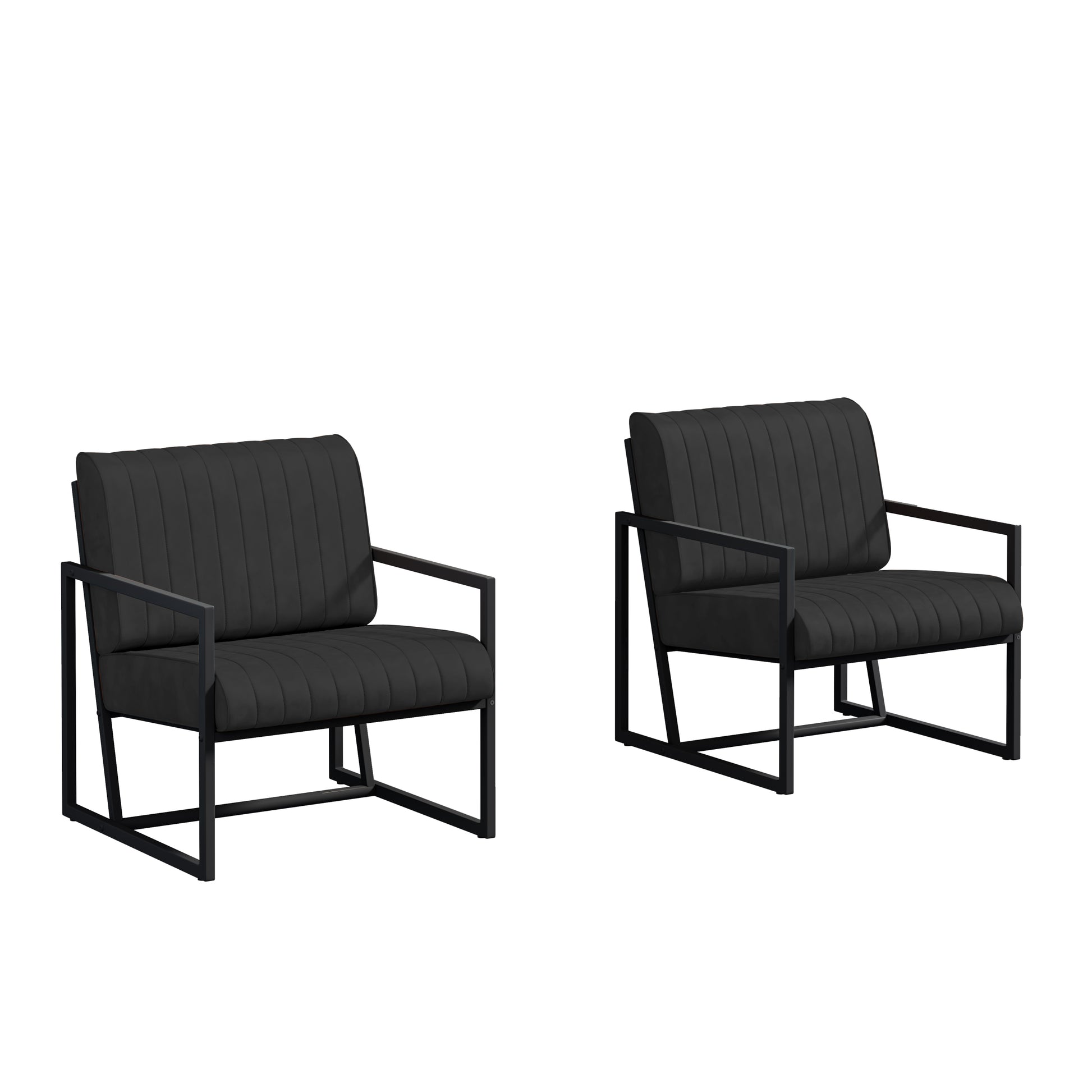 Modern Fashion Pu Leather Feature Armchair With Metal Frame Extra Thick Padded Backrest And Seat Cushion, For Living Room,Bedroom, Office, Studio, Black Black Pu