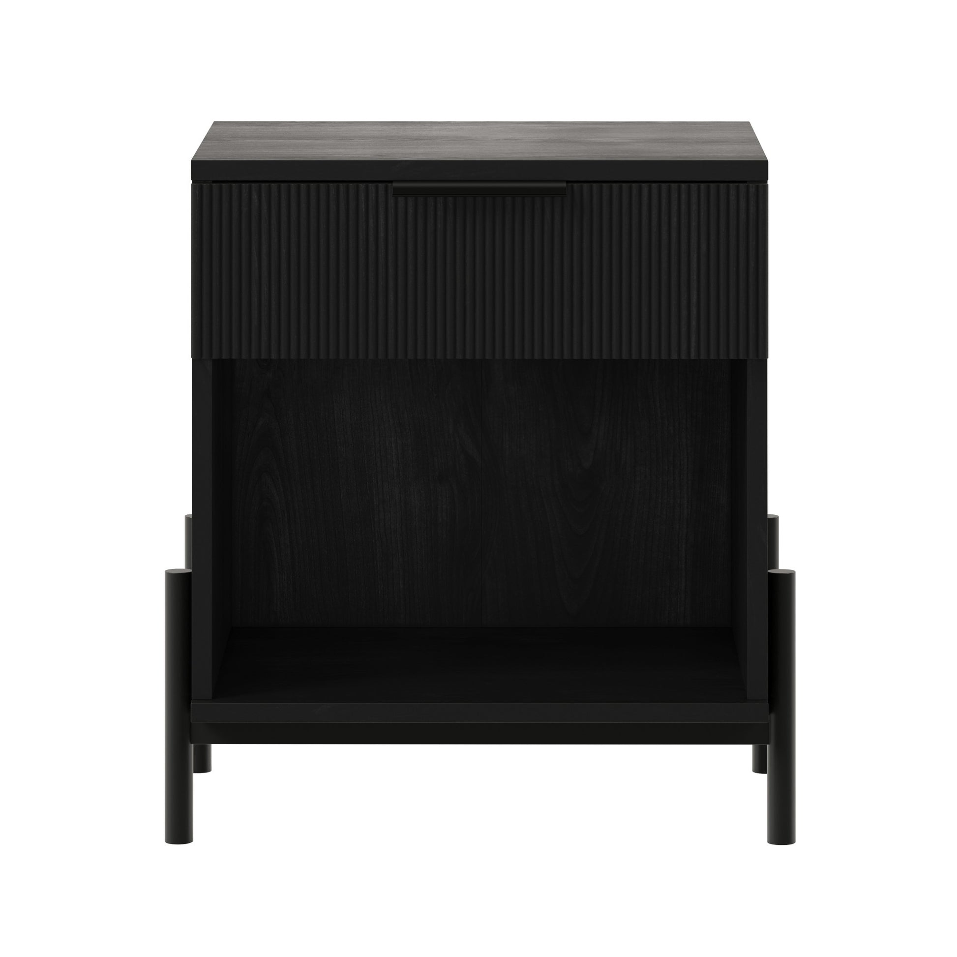 Modern Fluted Drawer Nightstand With Open Cubby Black Black Mdf Mdf