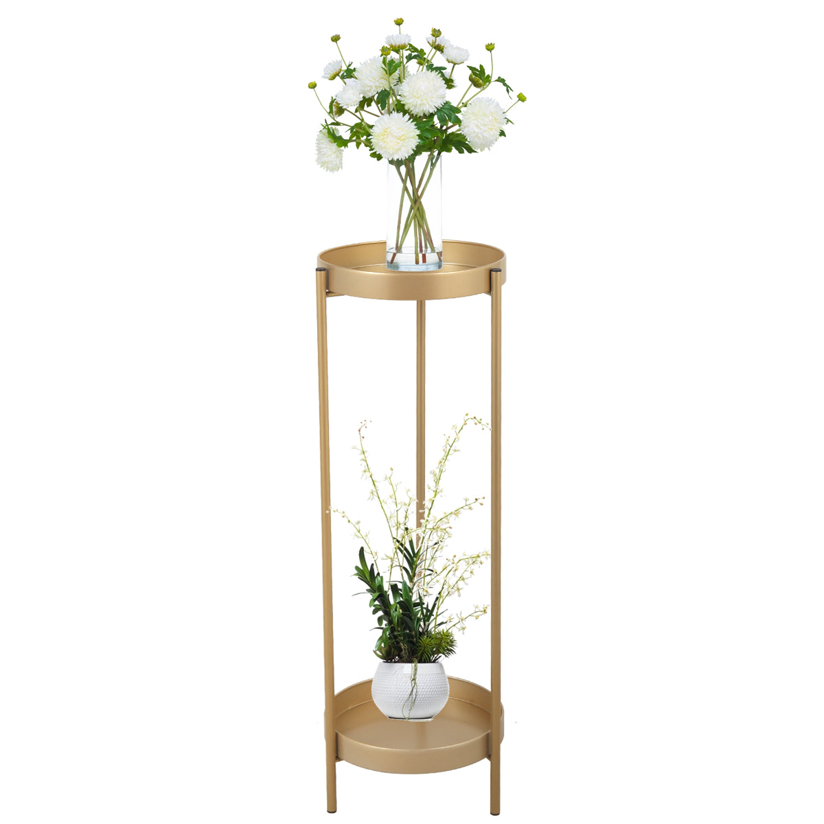 Modern Folding Metal 2 Tier Plant Stand Potted Plant Holder Shelf With 2 Round Trays Indoor Outdoor, Versatile, Golden Golden Metal