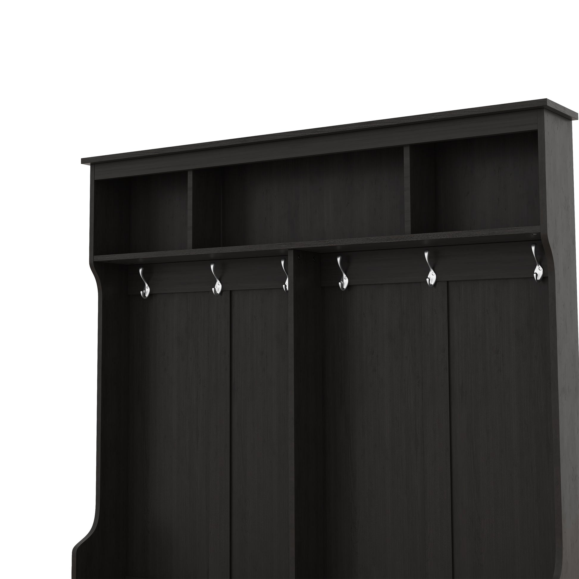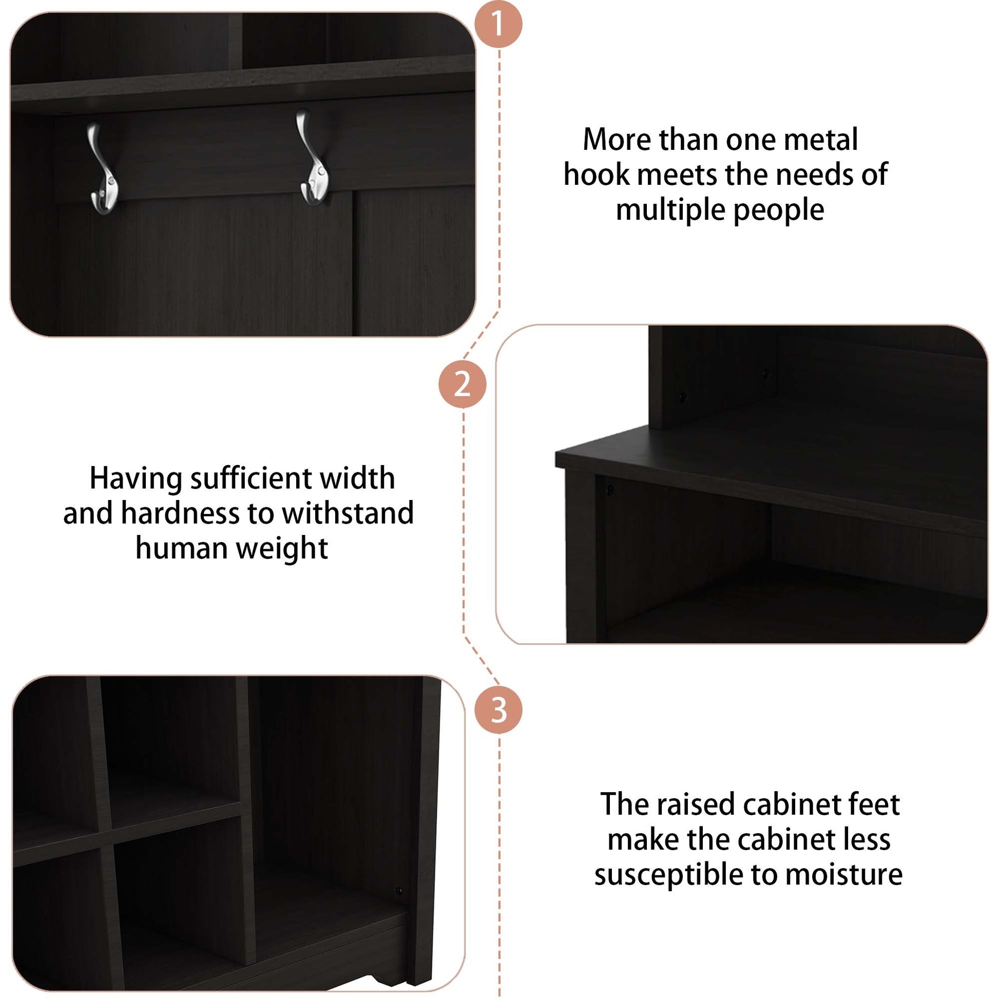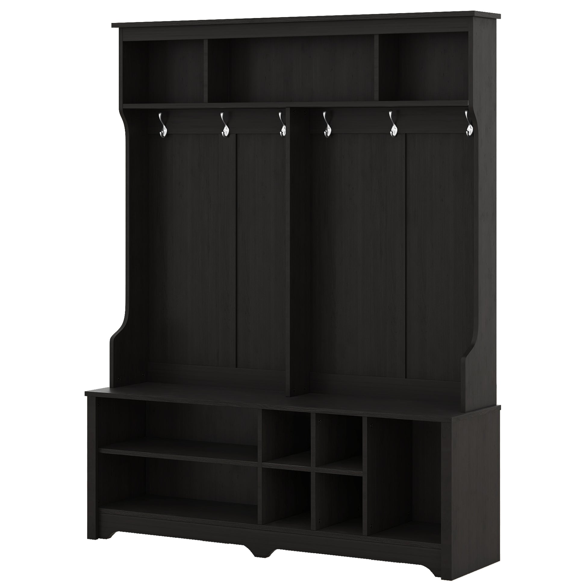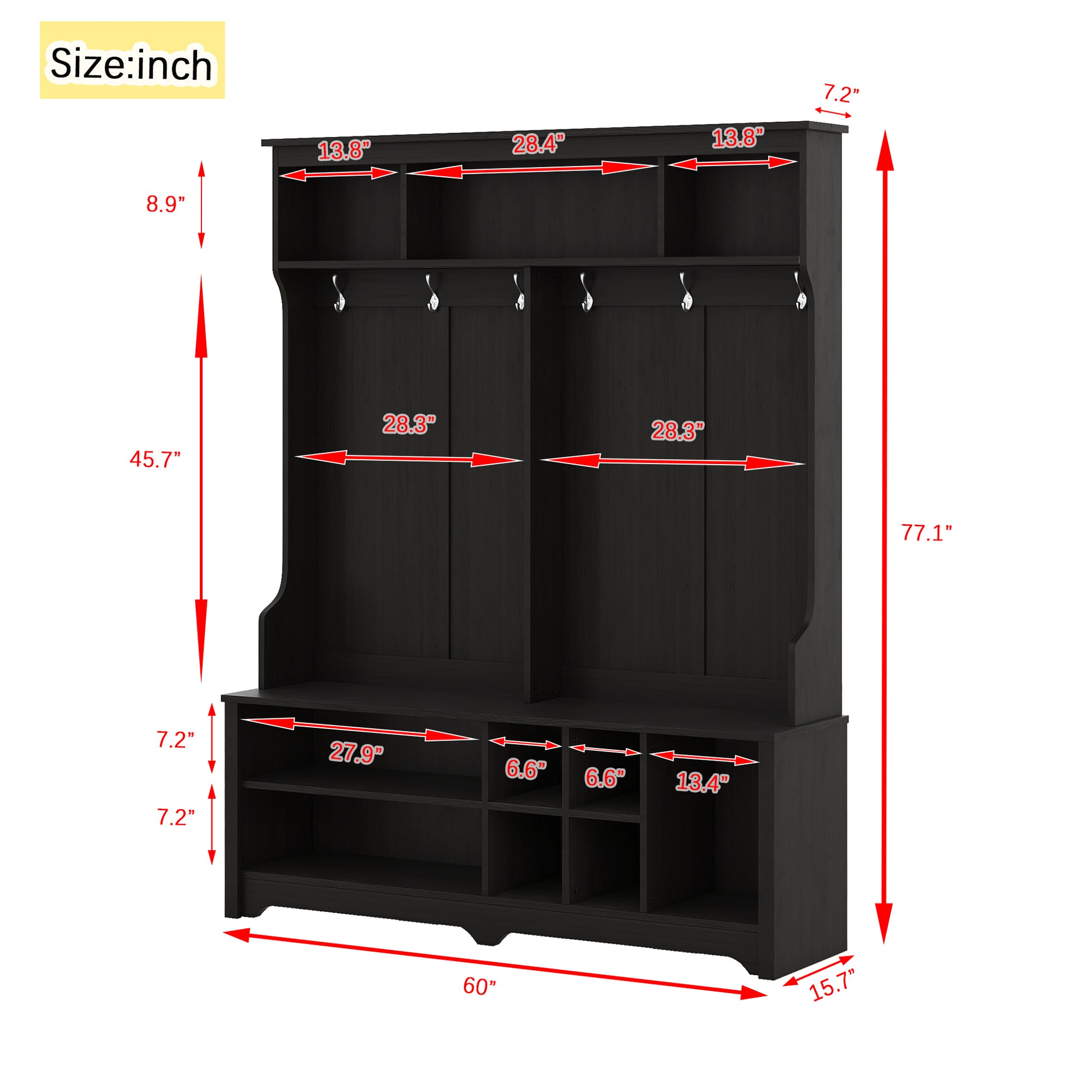 Modern Hallway Hall Tree With Metal Hooks And Storage Space, Multi Functional Entryway Coat Rack With Shoe Cubbies, Black Black Mdf