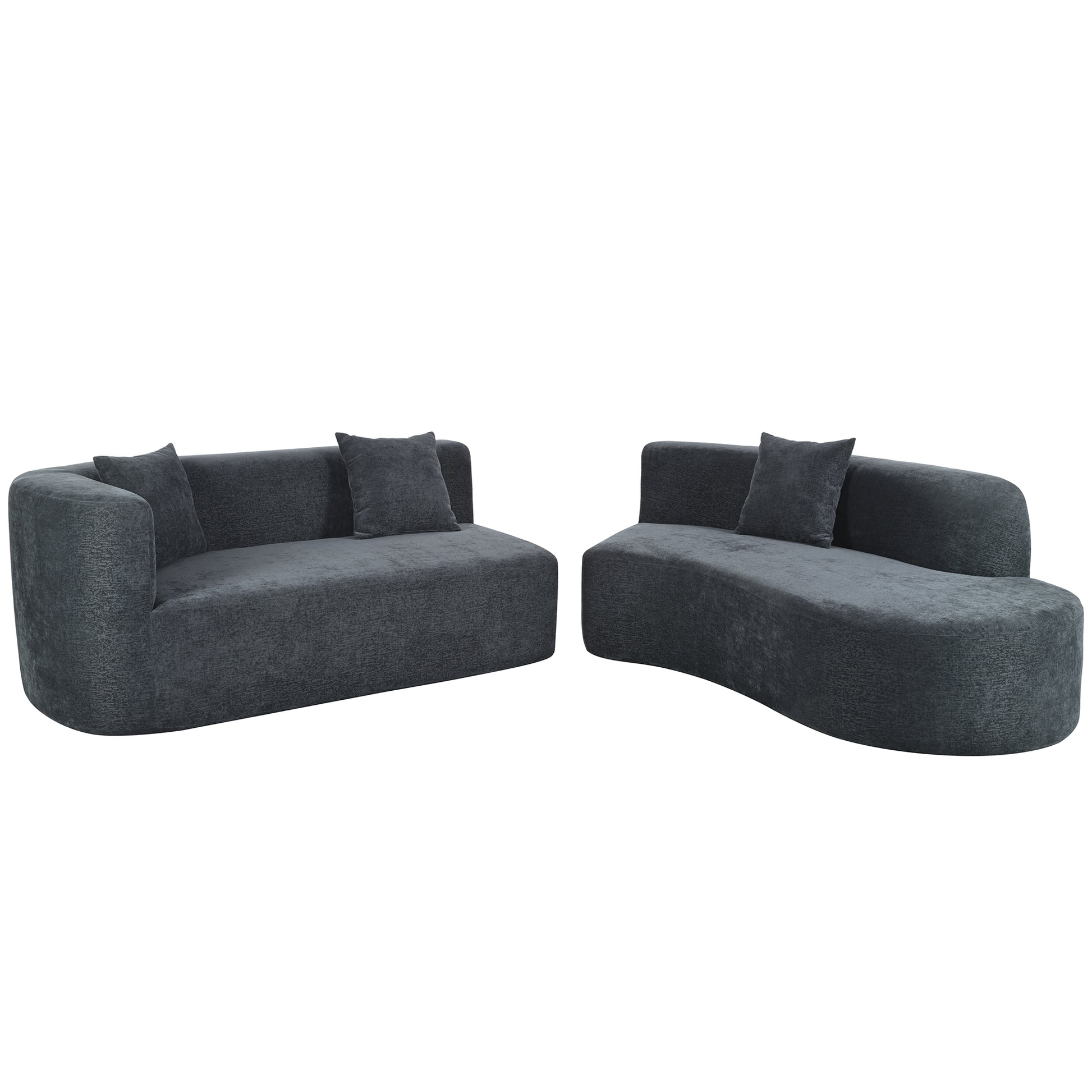 Modern Large 2 Piece Sectional Sofa With 3 Pillows,For Living Room, Bedroom Gray Polyester 2 Seat