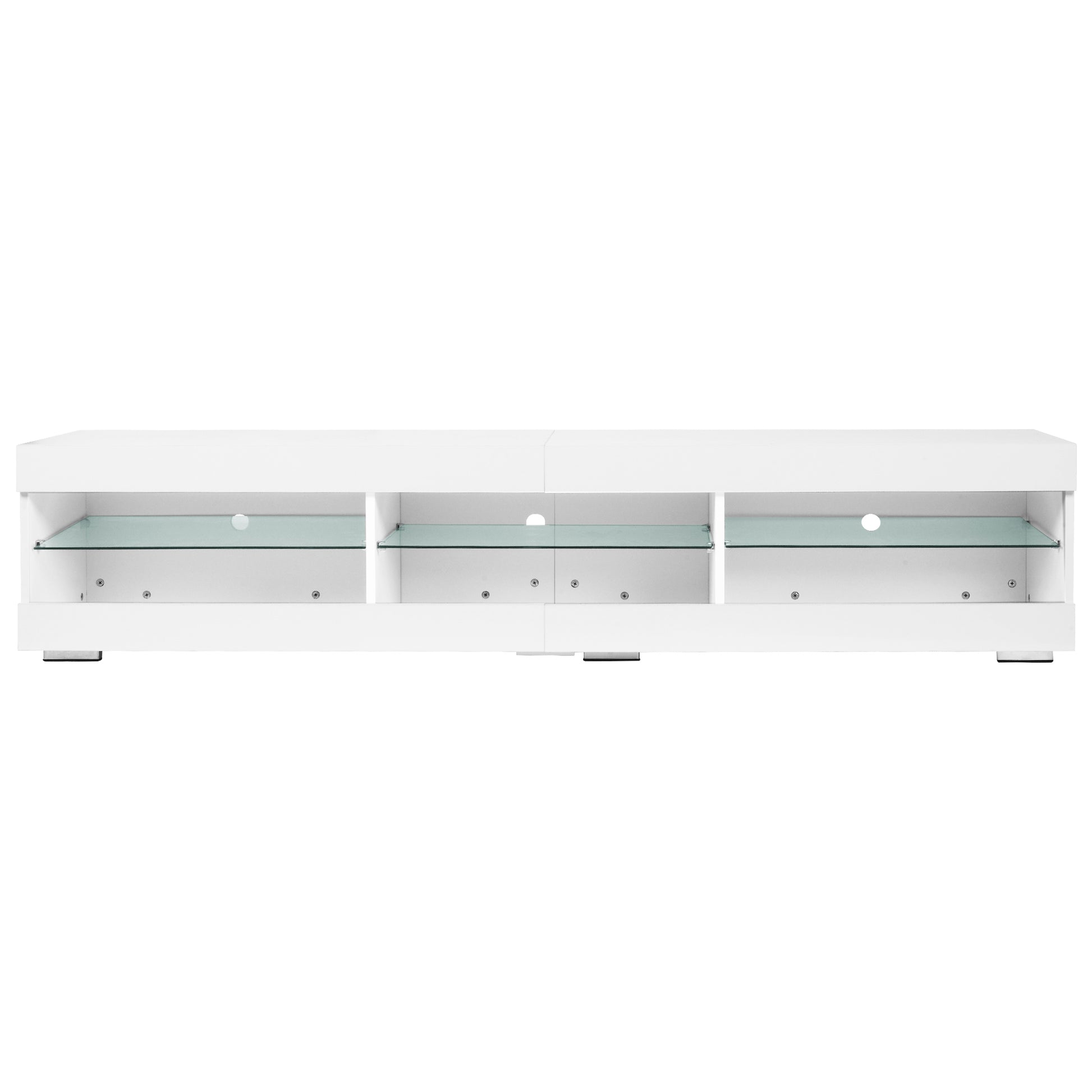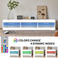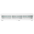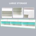 Modern Led Tv Stand Entertainment Center With Storage And Glass Shelves High Glossy Tv Cabinet Table For Living Room Bedroom White Particle Board