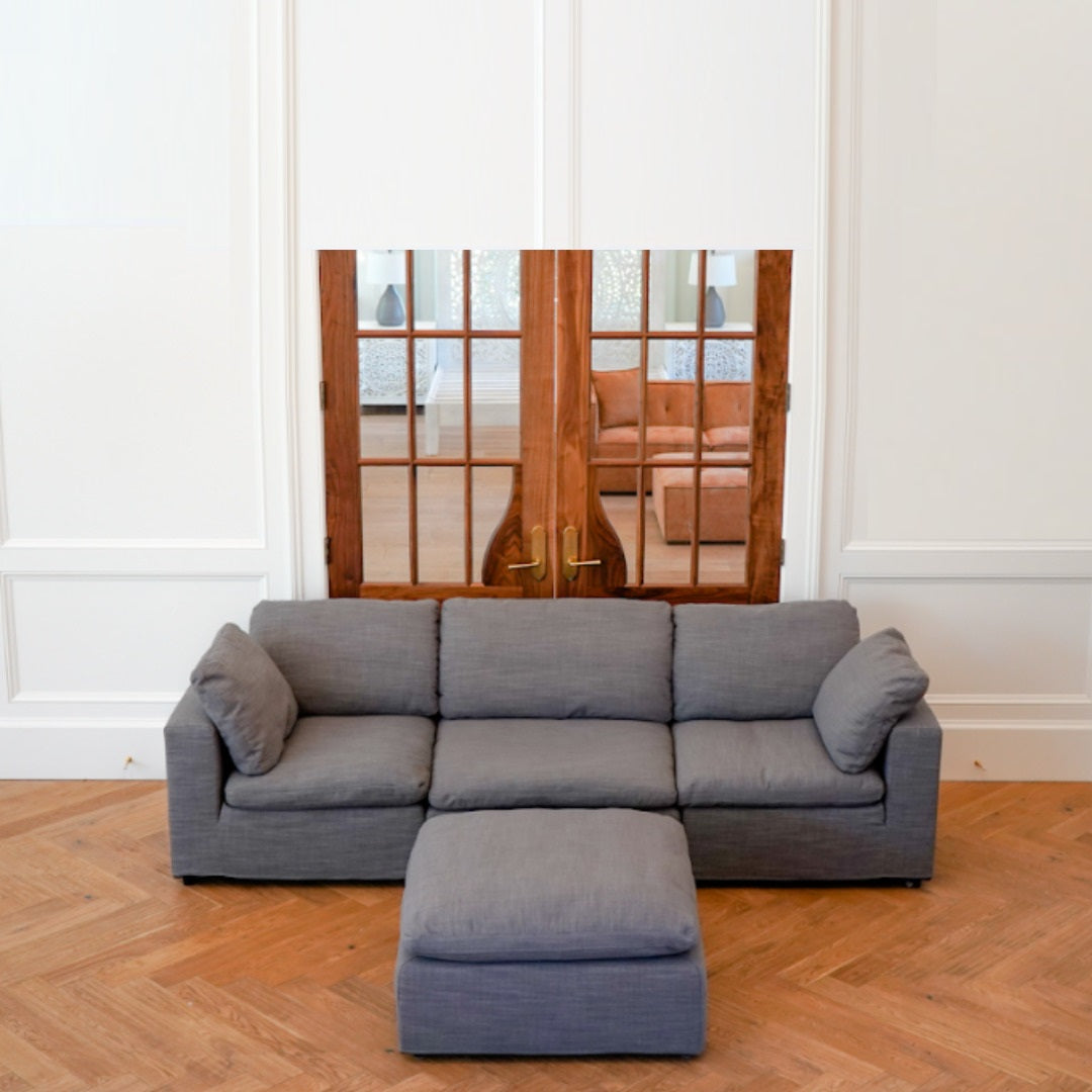 Modern Living Room Ottoman, Premium Fabric Upholstered 1 Pc Ottoman With Plush Seat Cushion Wood Primary Living Space Solid Grey Gray Linen Linen Or Linen Blend Medium Soft Backless Contemporary Cube Armless Polyester Wood Fabric