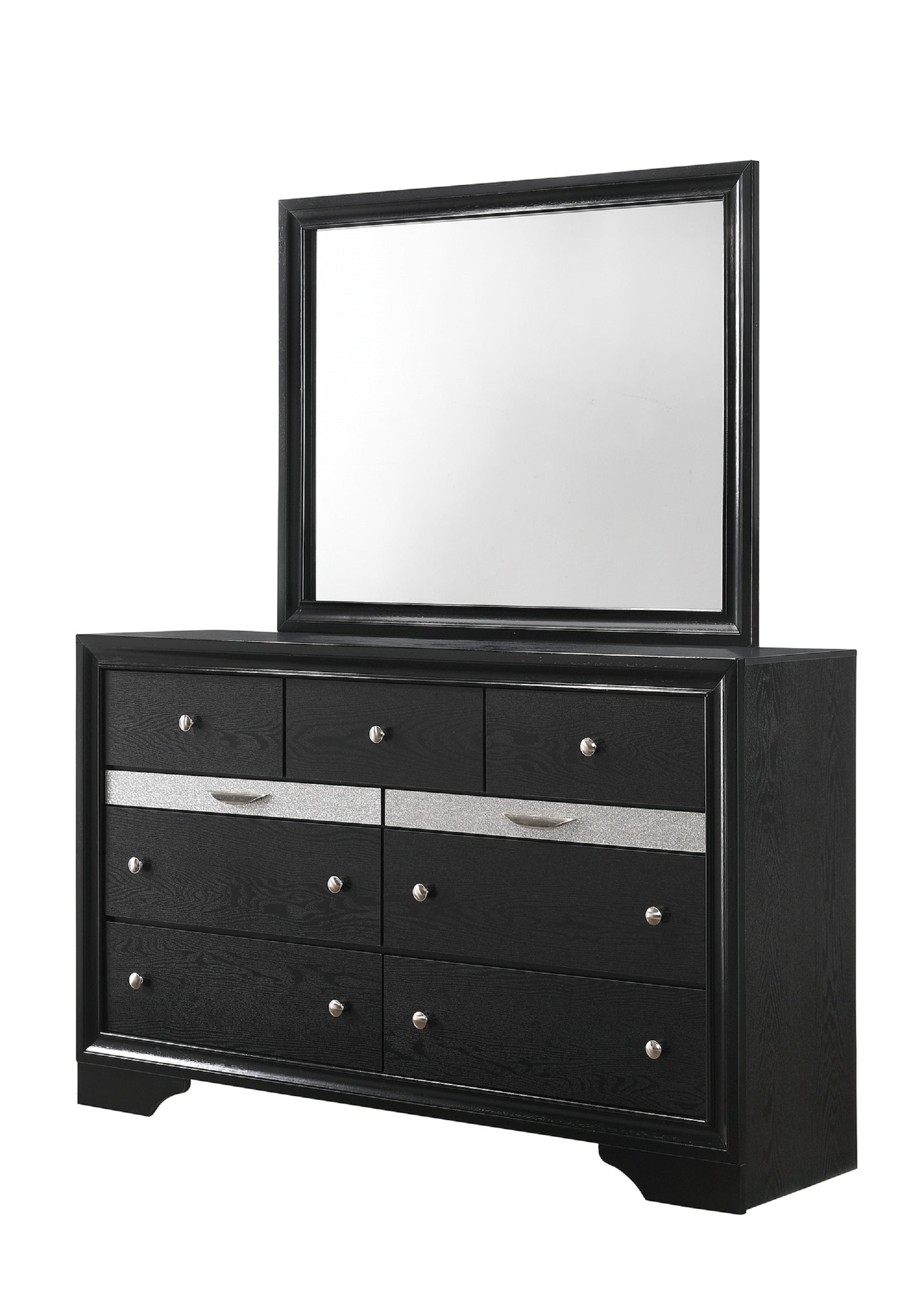 Modern Luxury 1Pc Glam 7 Drawer Dresser Pullout Jeweler Tray Silver Panel Bedroom Solid Wood Wooden Furniture Black Bedroom Glam,Luxury,Modern Wood