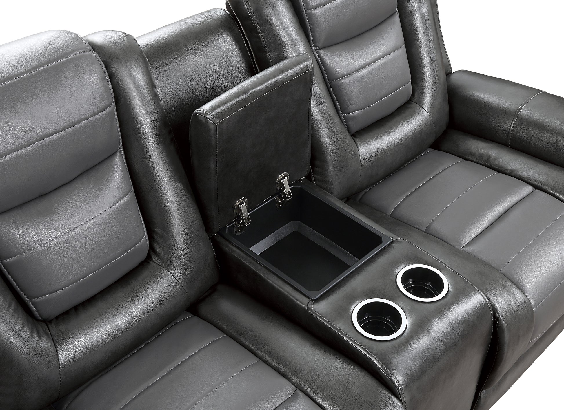Modern Luxury Loveseat Dual Glider Reclining With Center Console 1Pc Formal Living Room Furniture Premium Faux Leather Upholstery Comfortable Two Tone Gray Finish Dark Gray,Light Gray Faux Leather Wood Primary Living Space Luxury,Modern Plywood,Solid