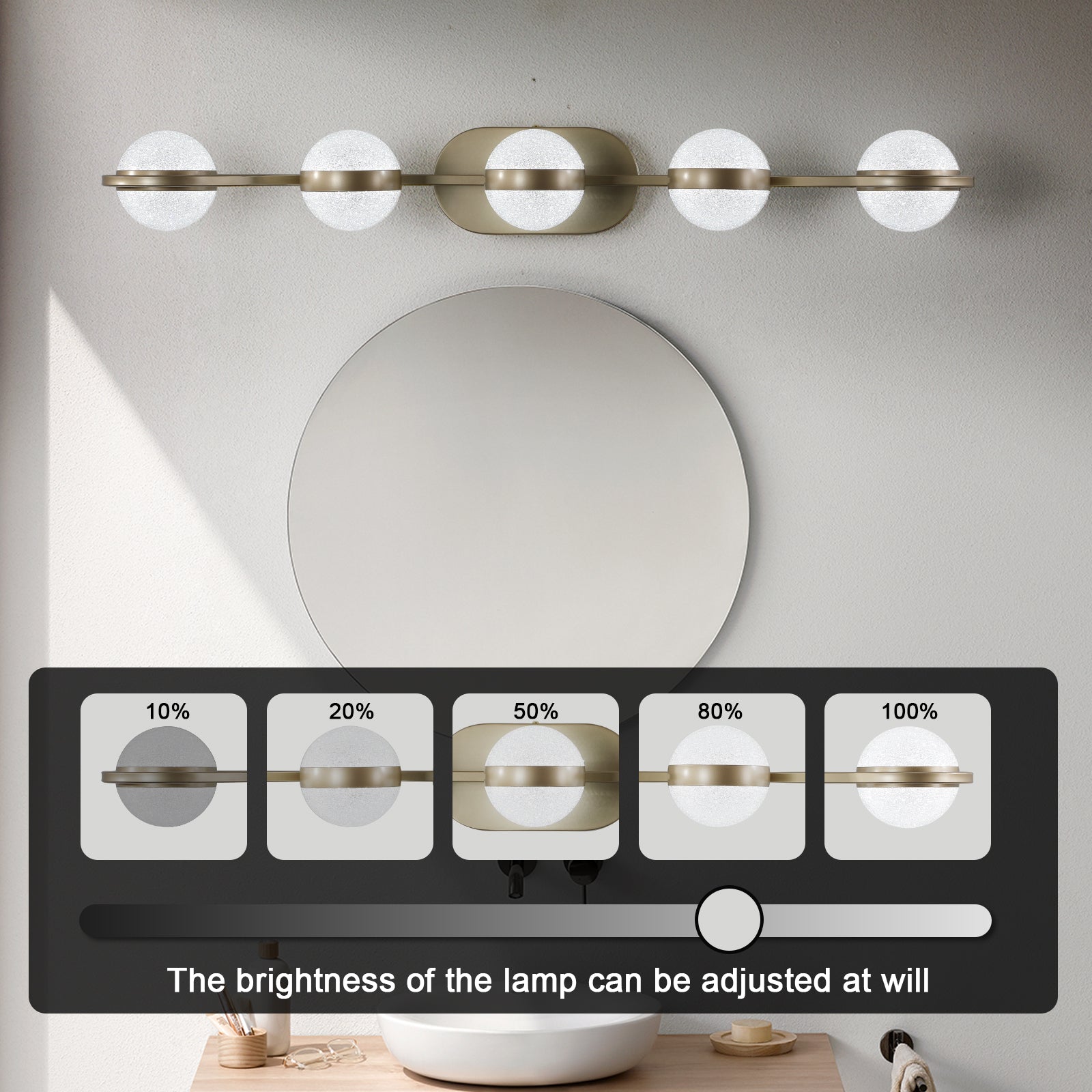 Modern Minimalist Bathroom Vanity Light, Led 5 Bulb Frosted Glass Shades, Wall Mounted Decorative Lighting Fixture, Suitable For Bathroom Vanity Mirror Champagne Gold Brushed Gold Modern Acrylic