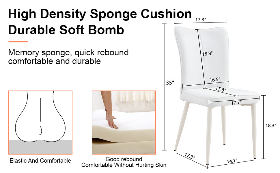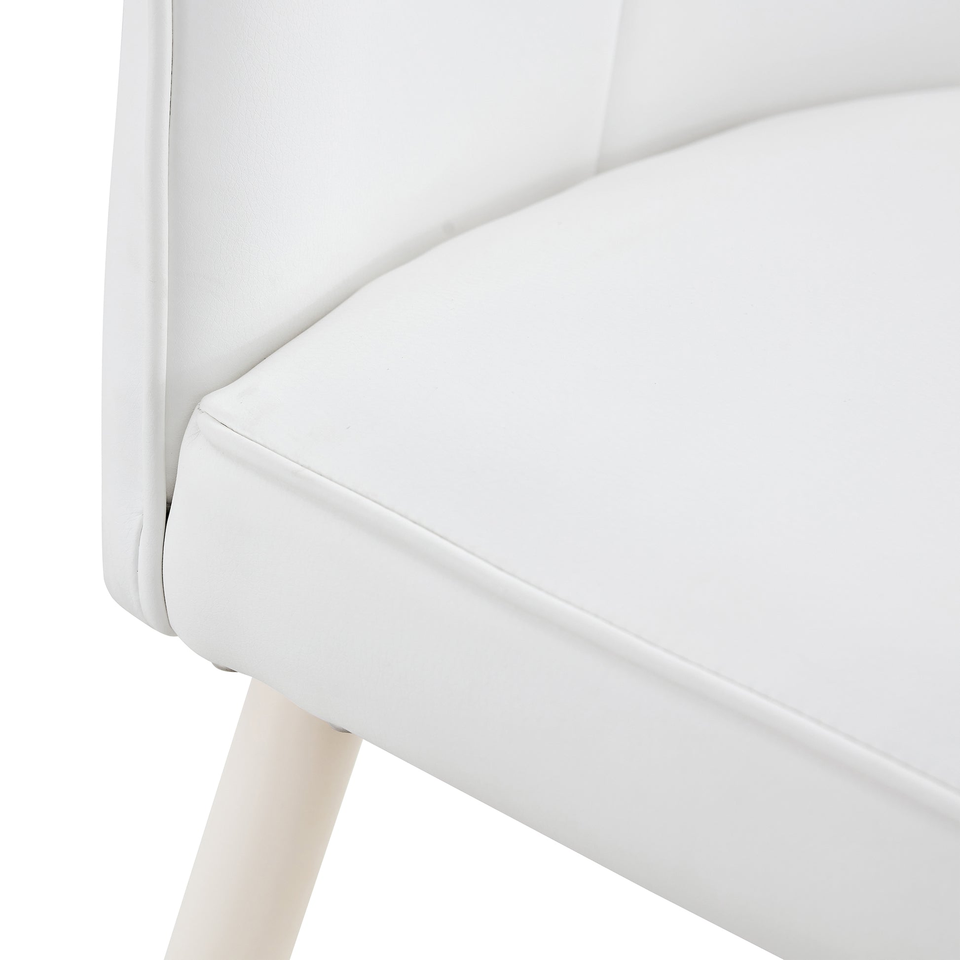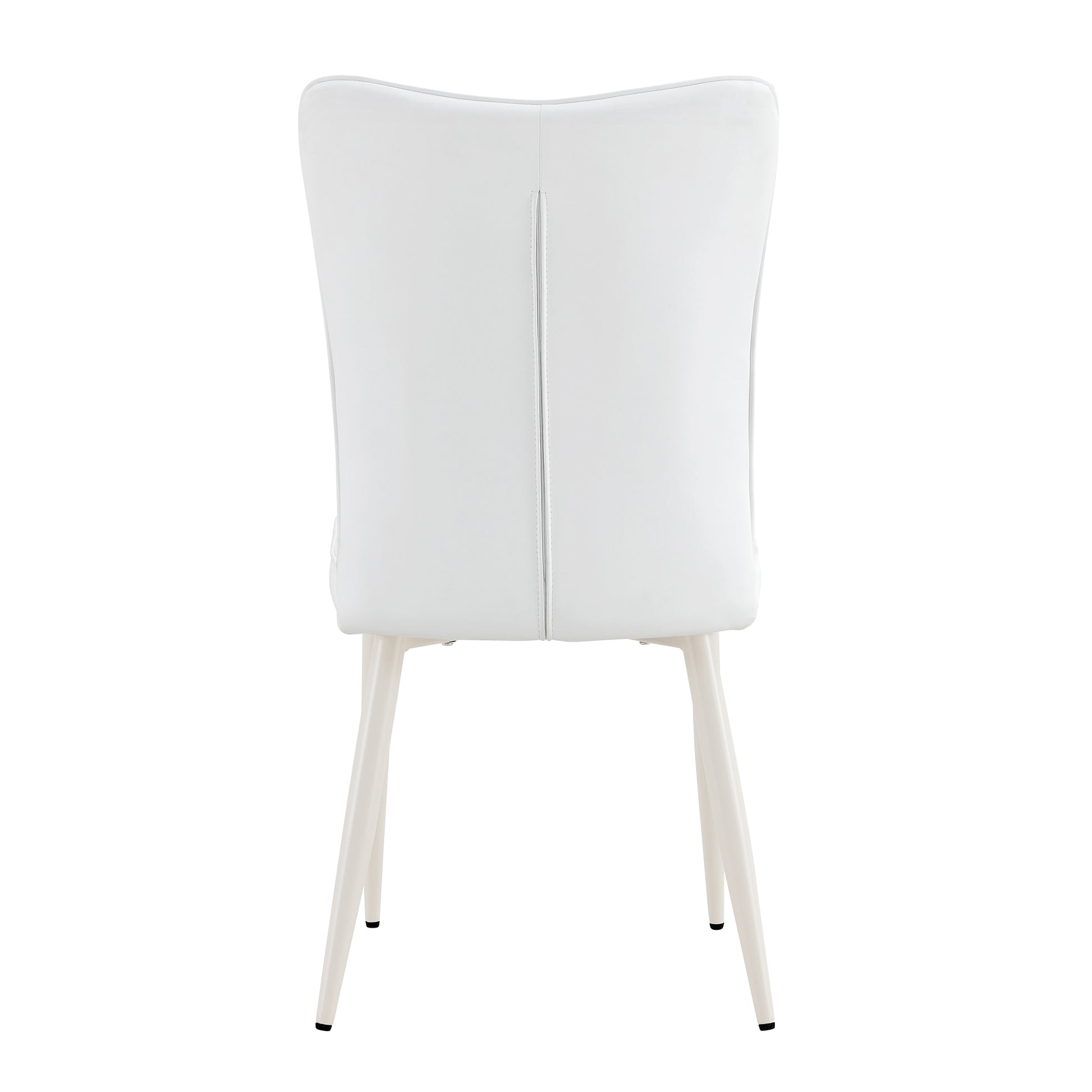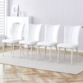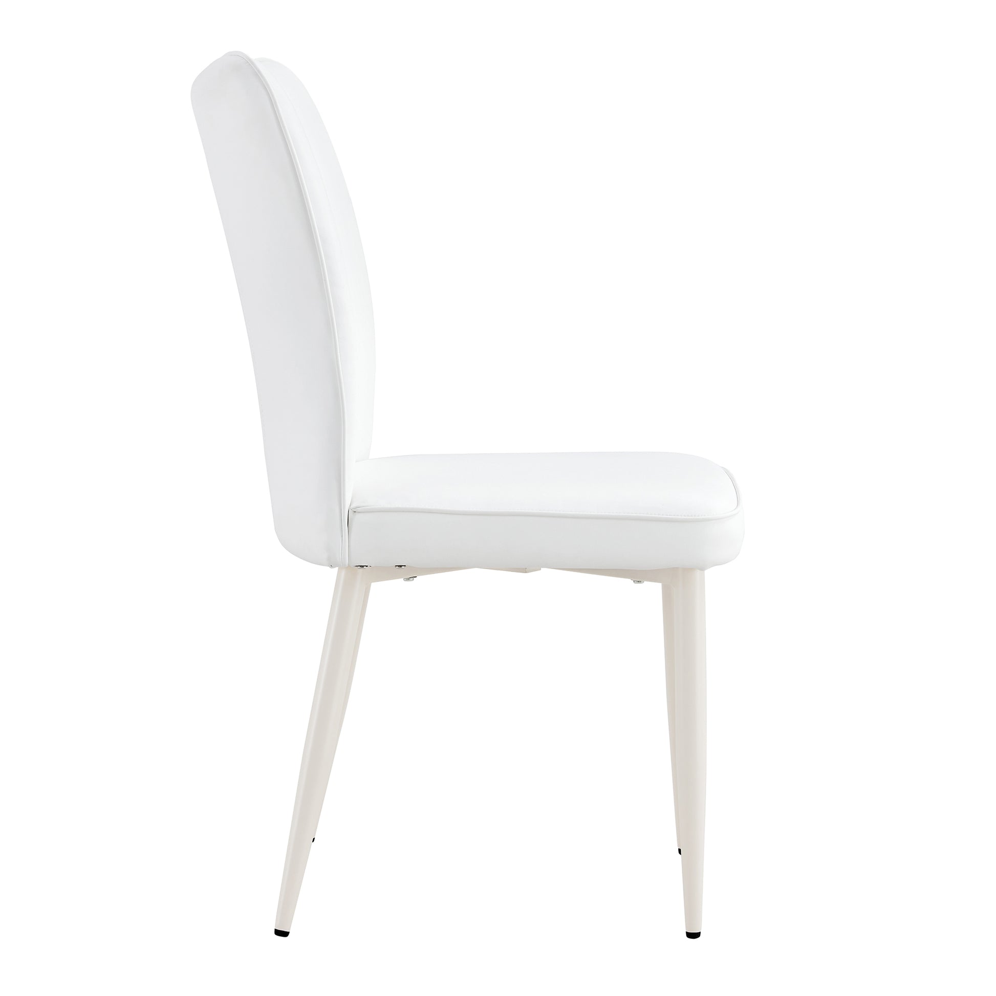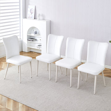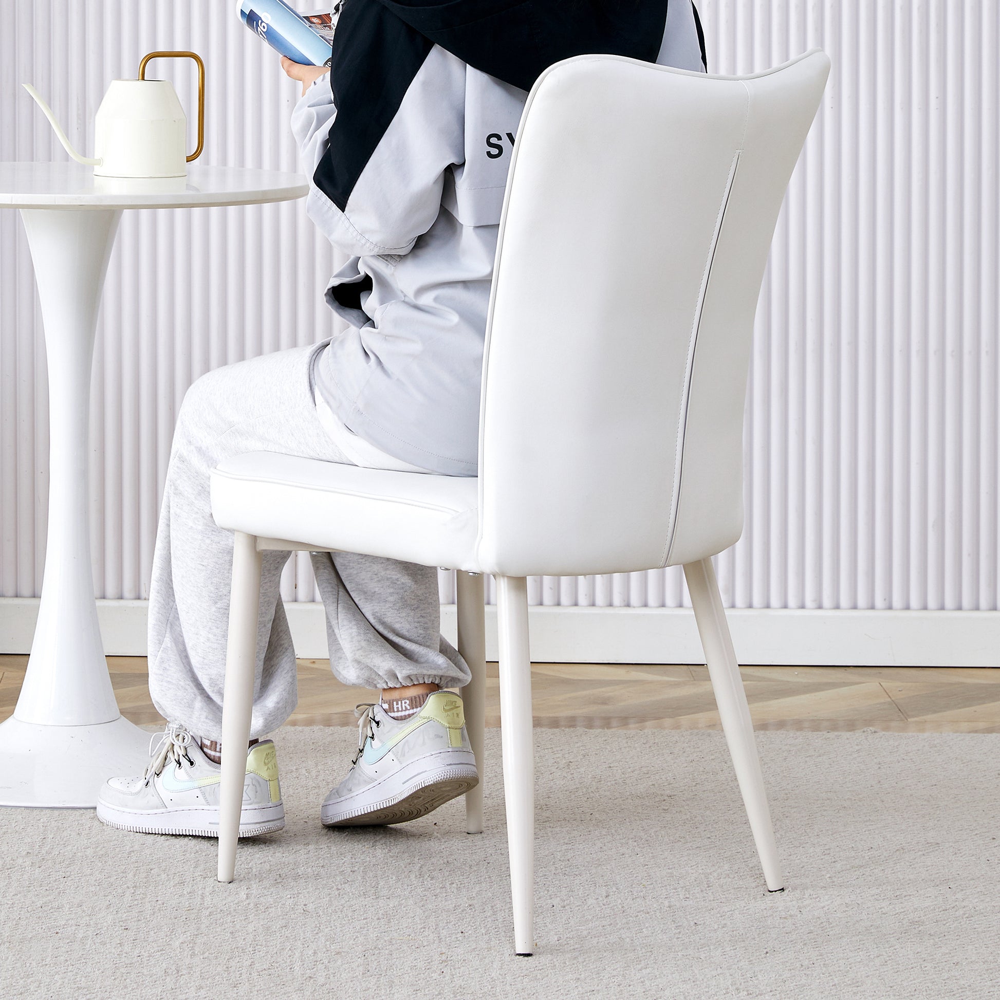 Modern Minimalist Dining Chair, White Pu Leather Curved Back And Seat Cushion, White Metal Chair Legs, Suitable For Dining Room, Bedroom, Living Room. A Set Of Four Chairs. 008 White Pu