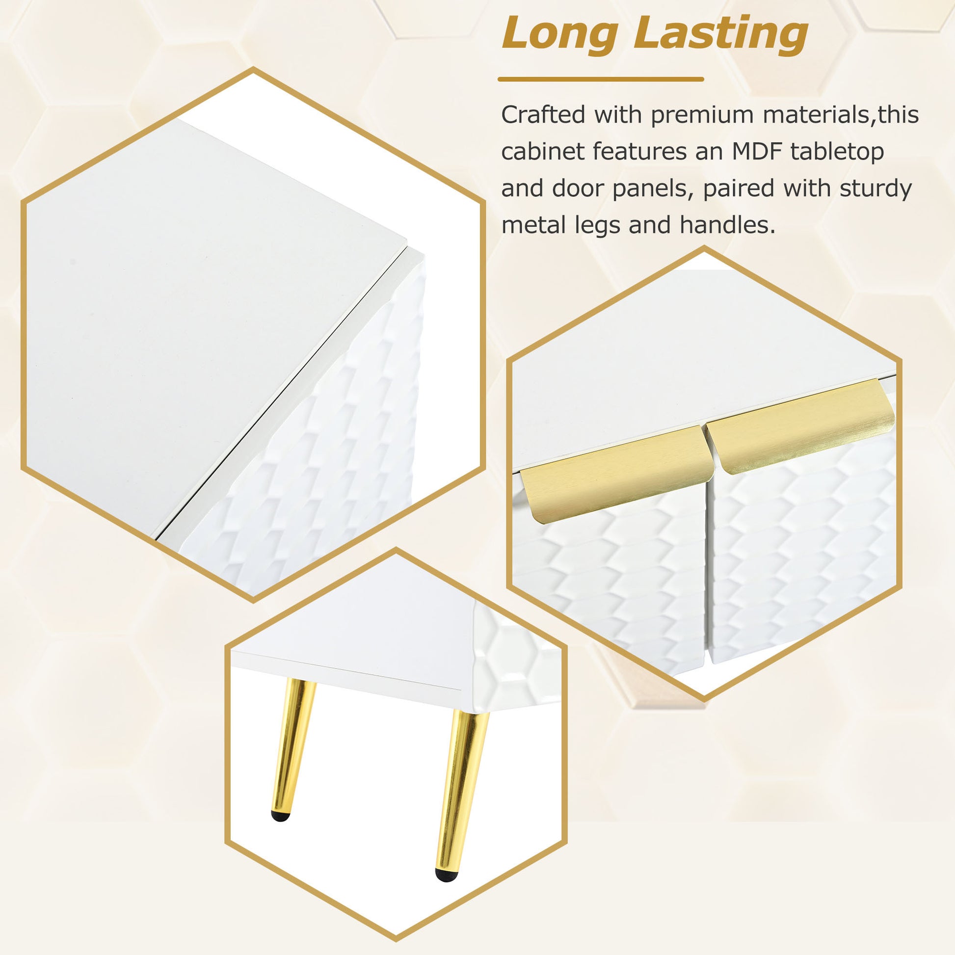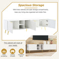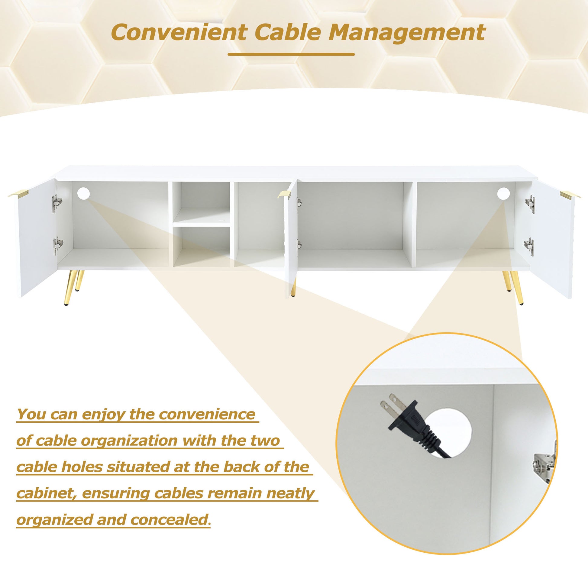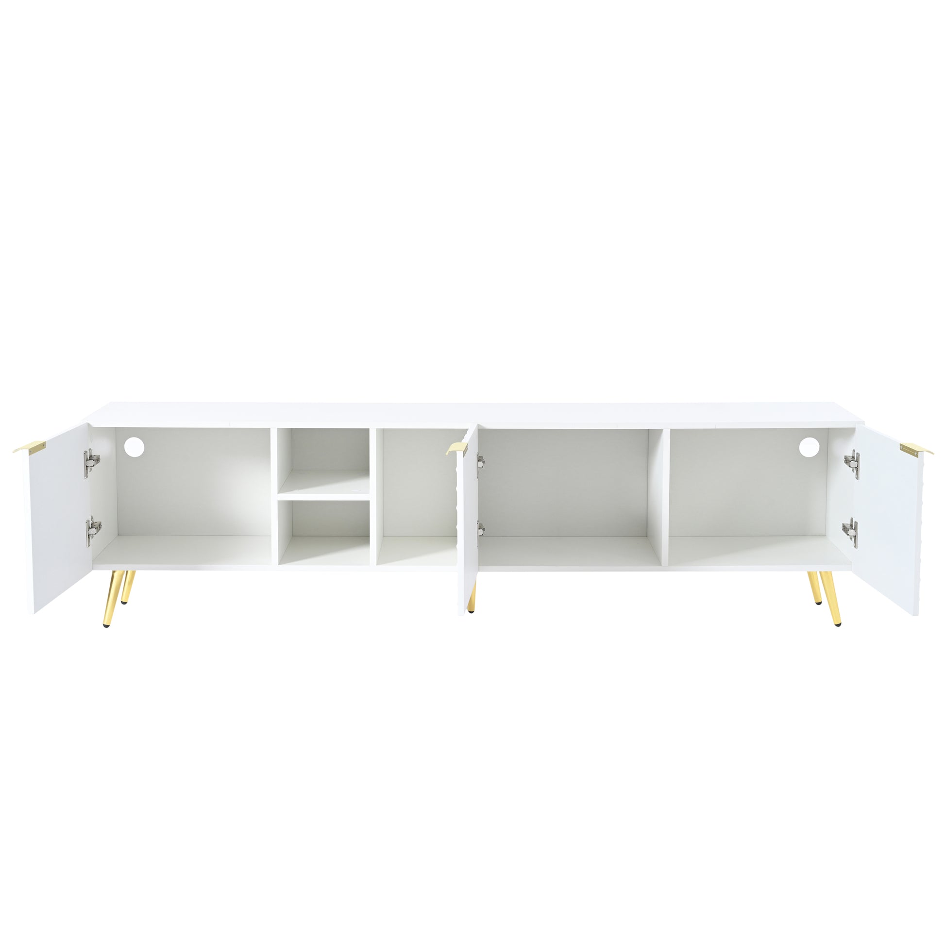 Modern Minimalist Geometric Tv Cabinet With Metal Handles And Gold Legs For Tvs Up To 80'', Multi Functional Tv Stand With Storage Cabinets, Entertainment Center For Living Room, White White Gold Primary Living Space 80 89 Inches 80 89 Inches 80 Inches
