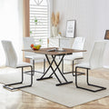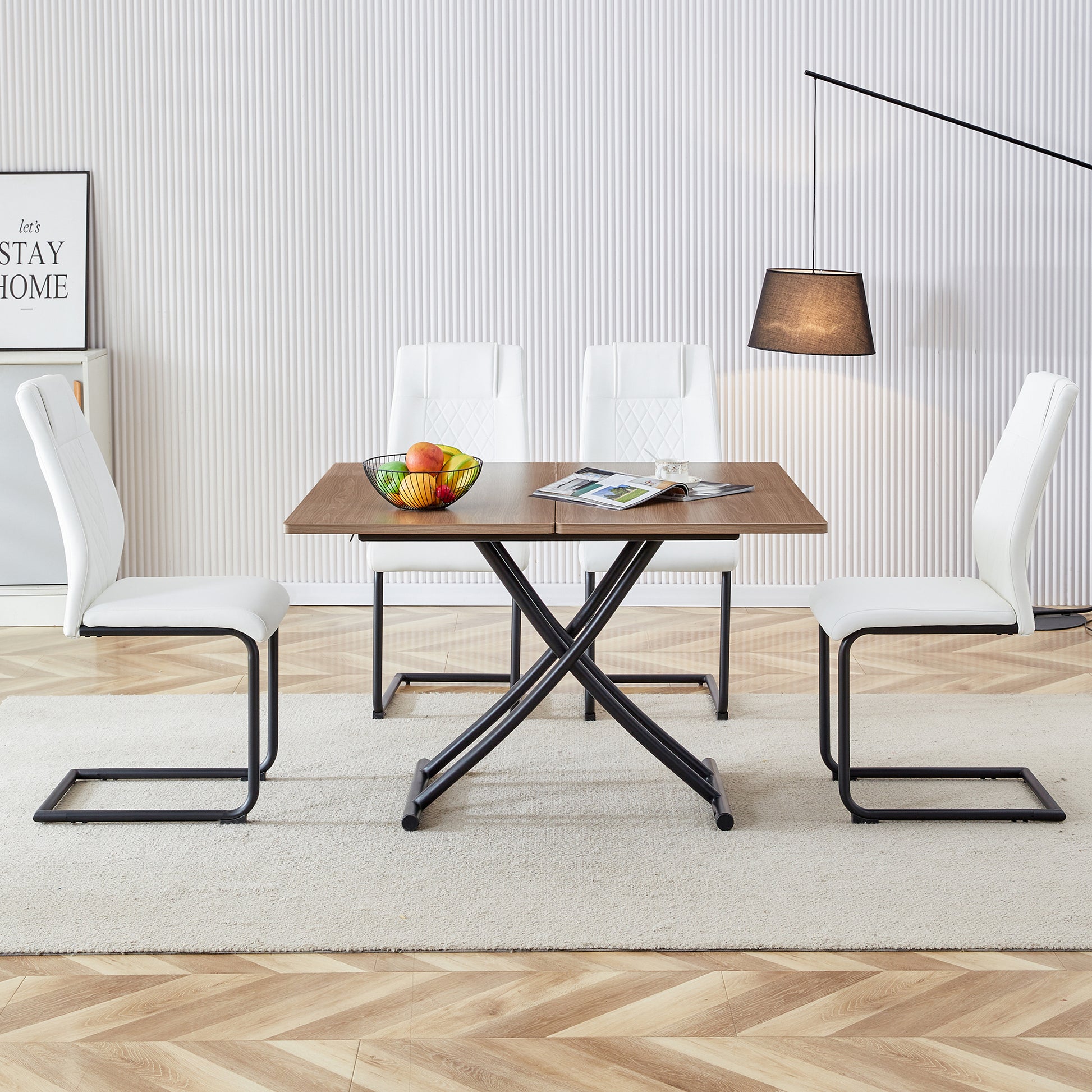 Modern Minimalist Multifunctional Lifting Table, 0.8 Inch Wood Grain Craft Sticker Desktop, Black Metal Legs. Paired With 4 Faux Leather Upholstered Dining Chairs With Black Metal Legs Lt 10055 C 001 Natural Wood Wash Metal