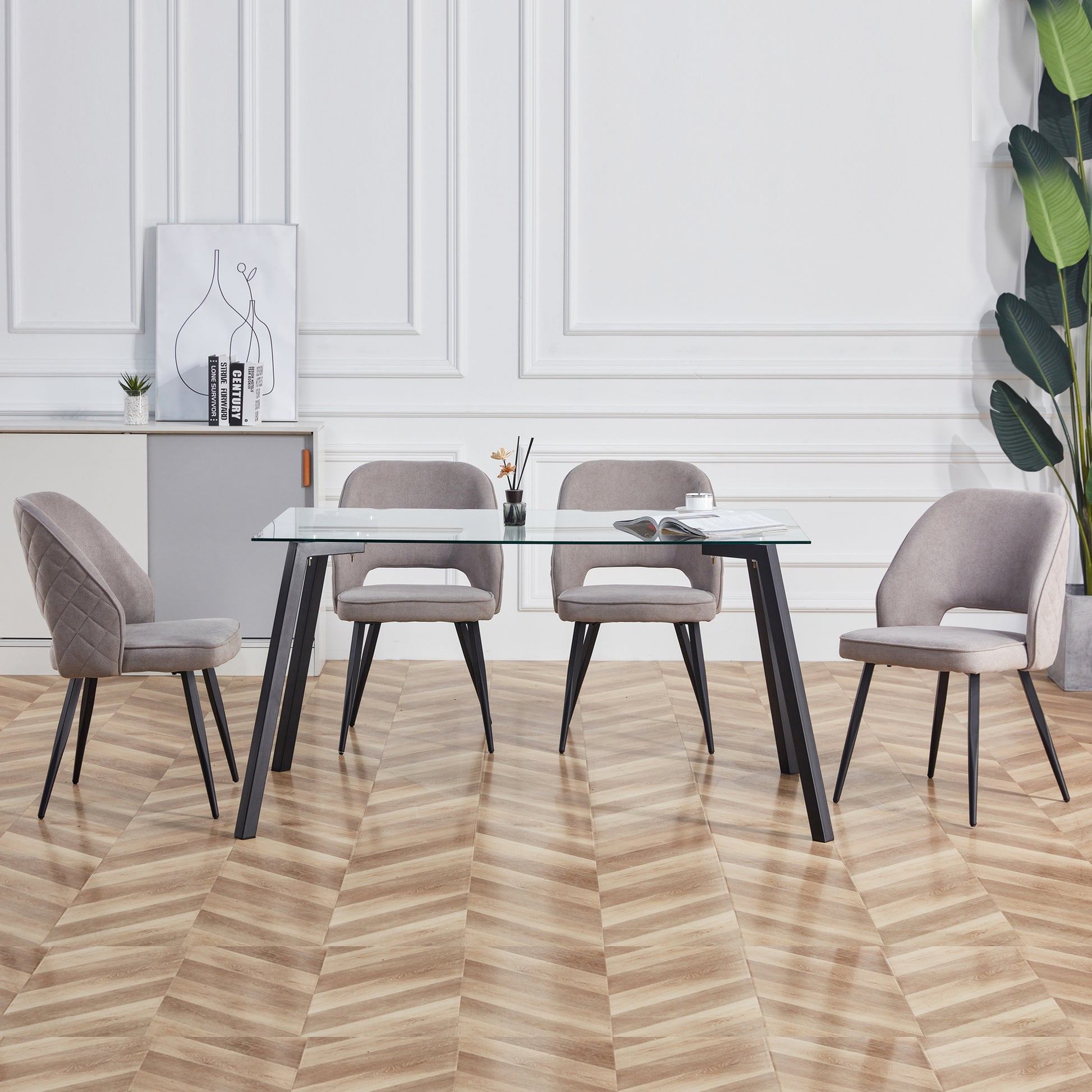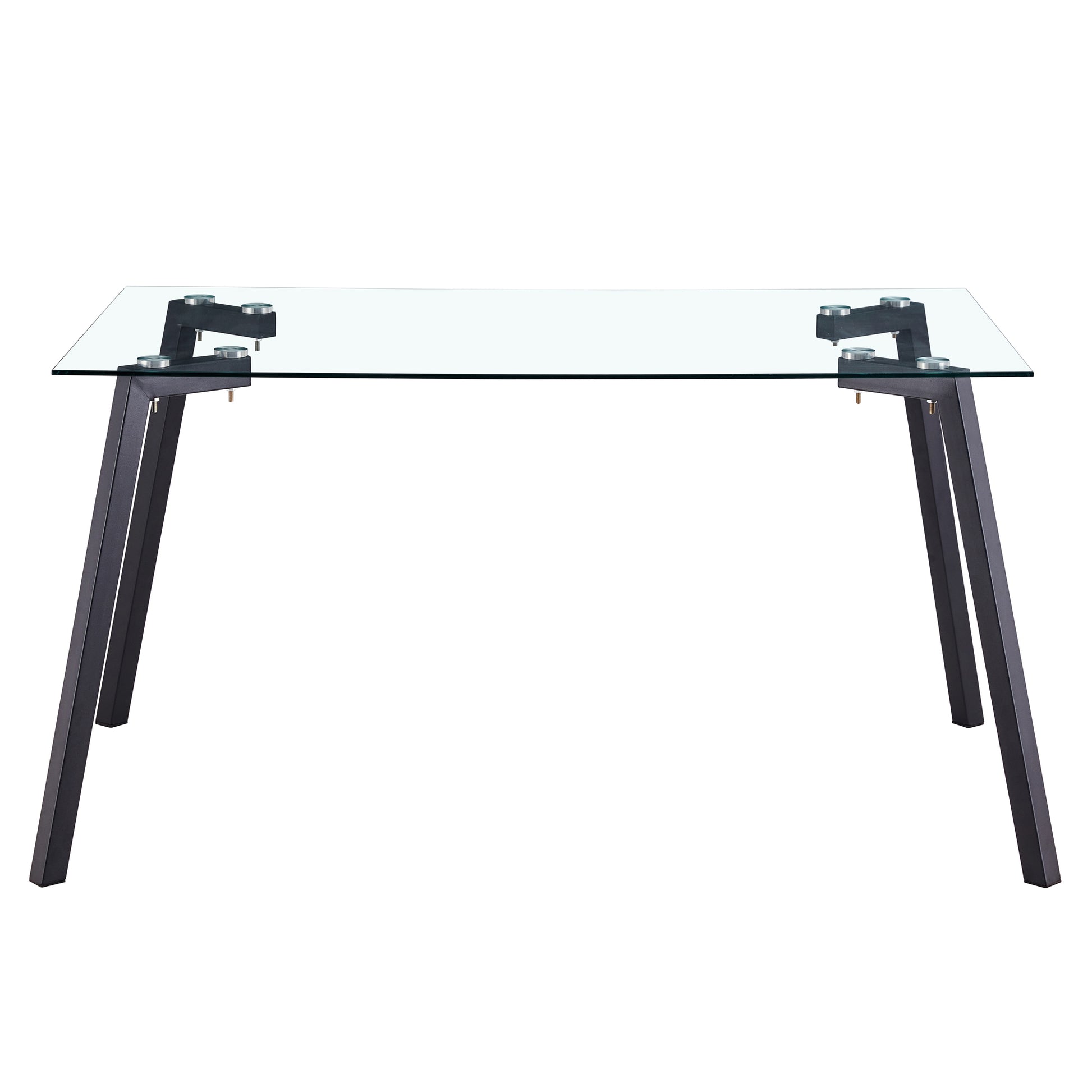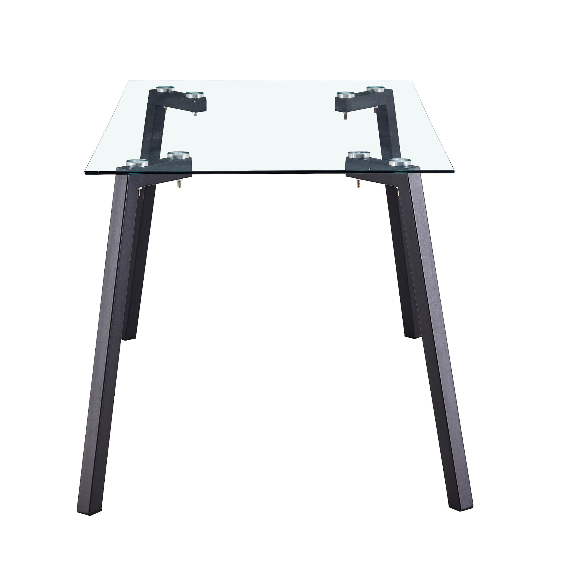 Modern Minimalist Rectangular Glass Dining Table For 4 6 With 0.31" Tempered Glass Tabletop And Black Coating Metal Legs, Writing Table Desk, For Kitchen Dining Living Room, 51" W X 31"D X 30" H 1123 Black Glass