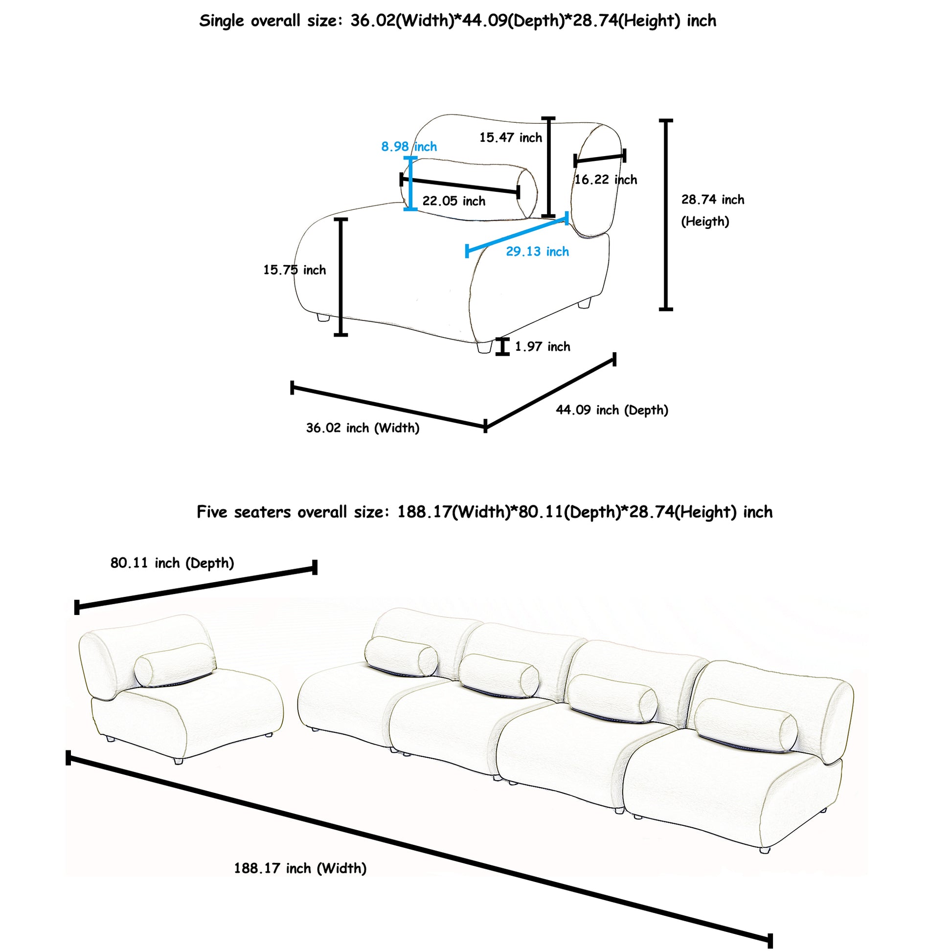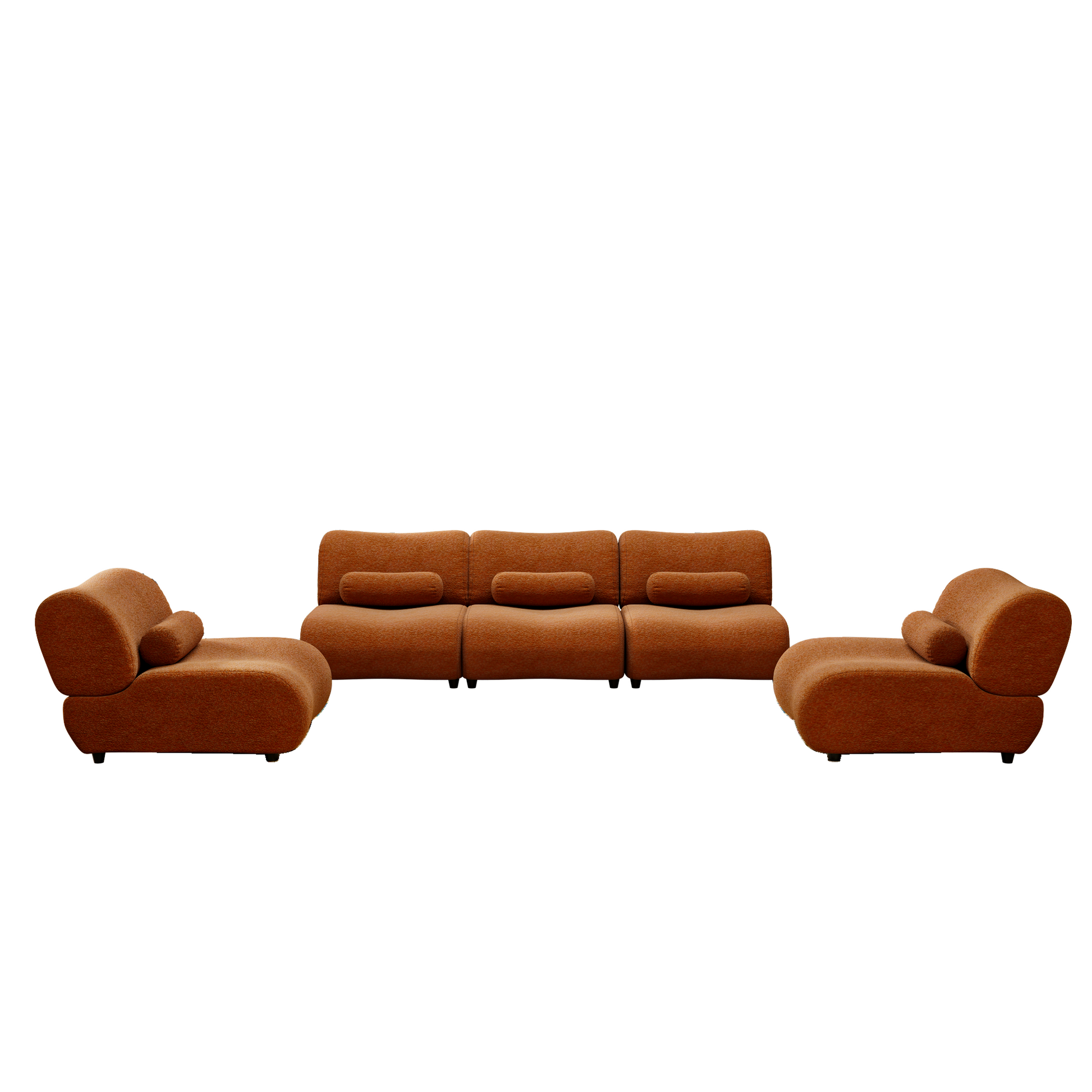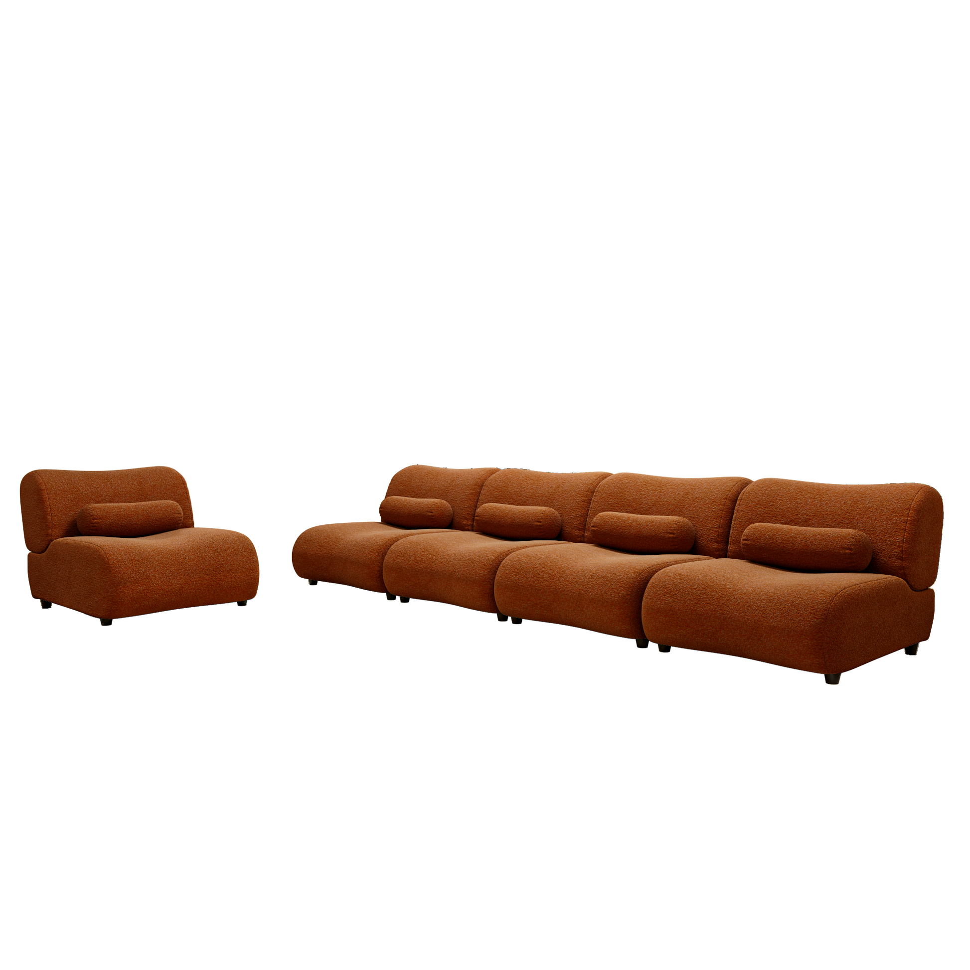 Modern Modular Chenille Sofa Set, 5 Pieces Living Room Couch With 70 Reclined Backrest & Cylindrical Pillows, Rust Orange Upholstery, Sectional Sofa For Large Spaces, Home & Office Orange Chenille 5