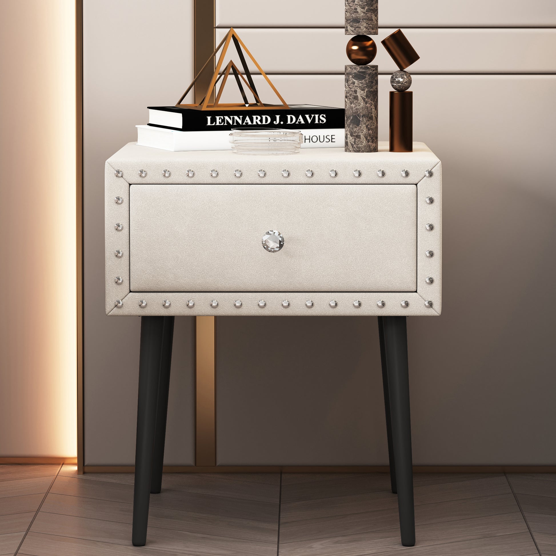 Modern Nightstands Set Of 2 With Drawer And Crystal Handle, Elegant Rivet Velvet Design Bedside Table For Bedroom, Beige Beige 1 Drawer Bedside Cabinet Mdf