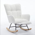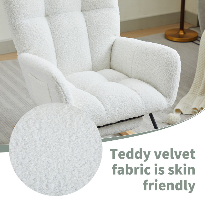 Modern Nursery Rocking Chair, Upholstered Glider Chair With High Backrest, Rocker Accent Armchair With Solid Wood Legs For Nursery Bedroom Living Room White White Teddy