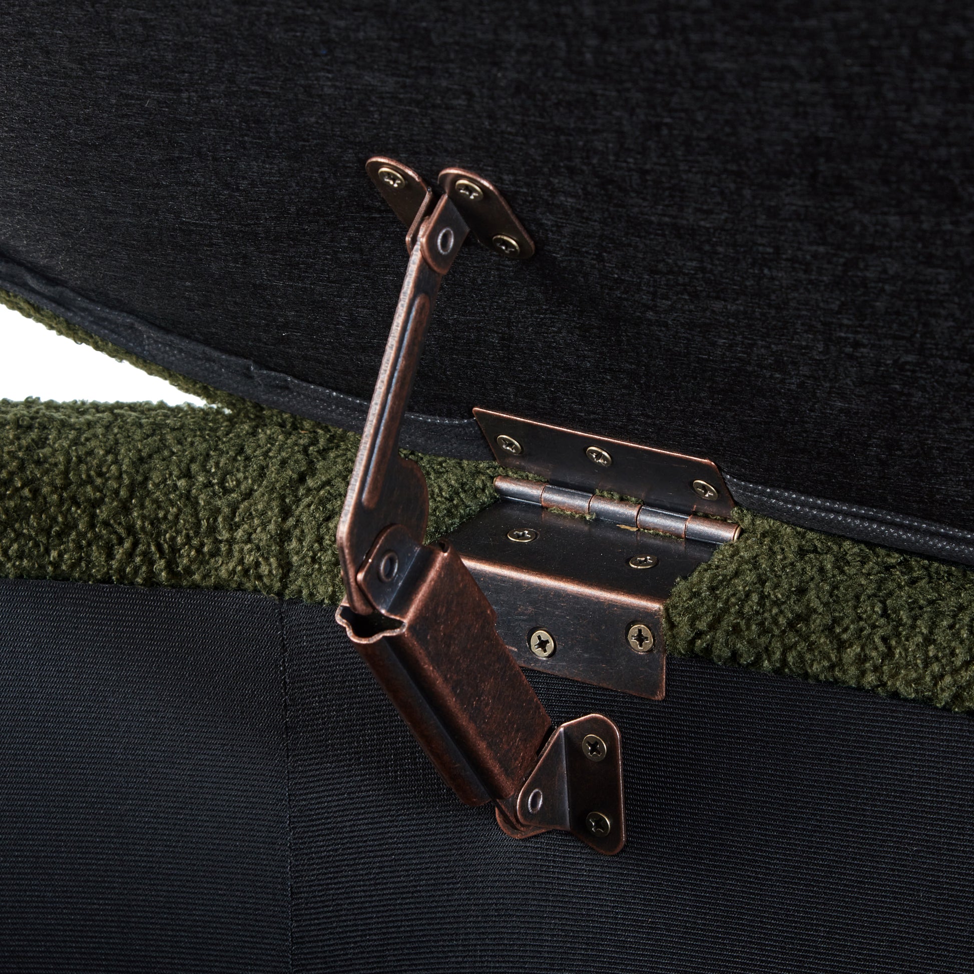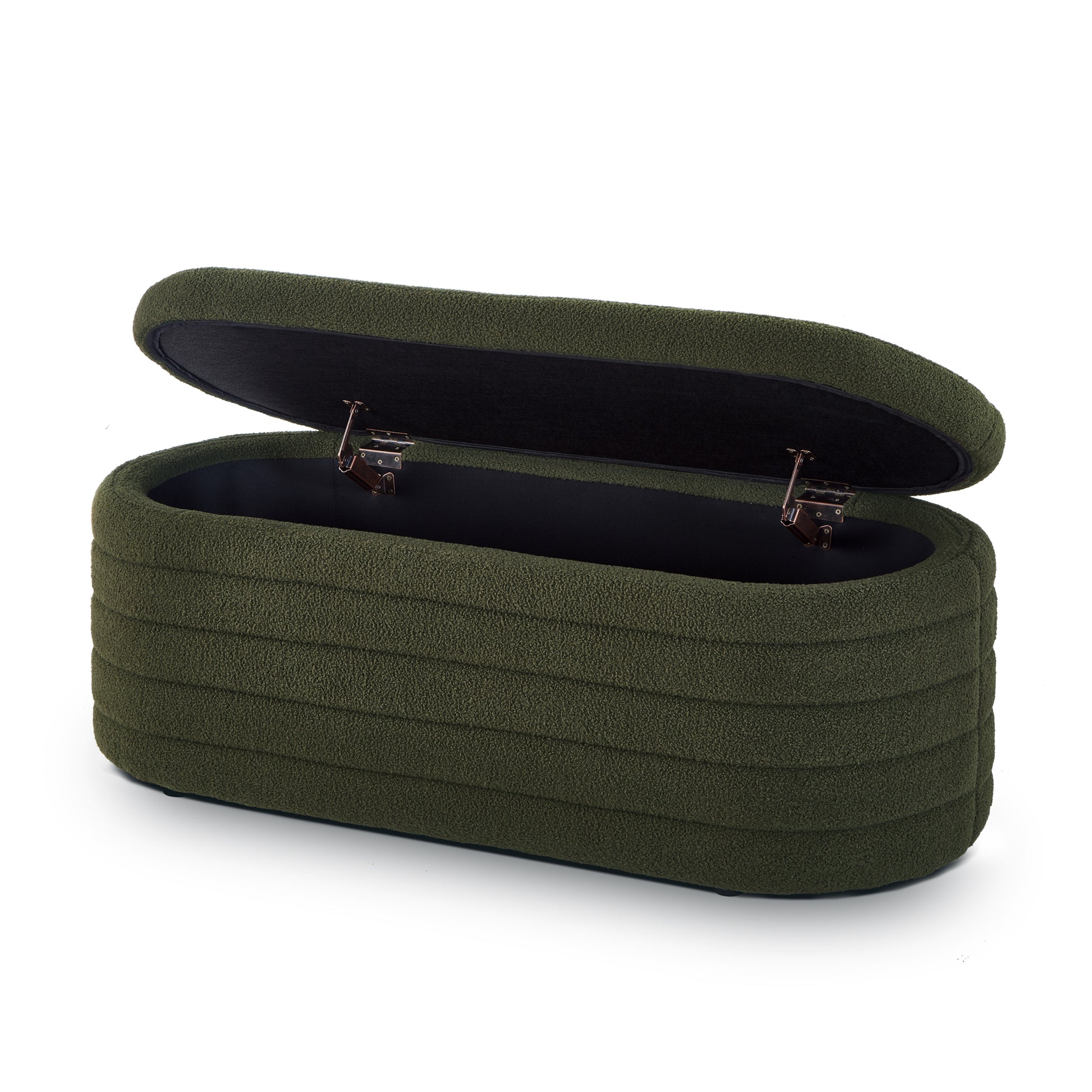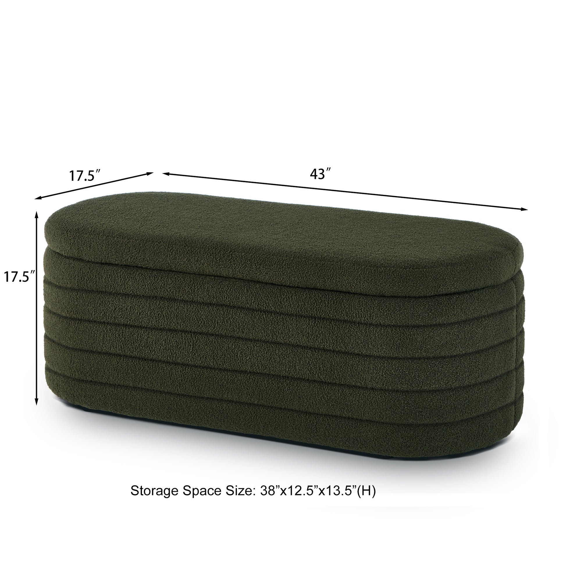 Modern Oval Storage Ottoman Bench, Upholstered Boucle Teddy Fabric End Of Bed Bench With Storage, End Of Bed Stool With Safety Hinge For Bedroom, Living Room, Entryway, Dark Green Dark Green Primary Living Space Oval Black American