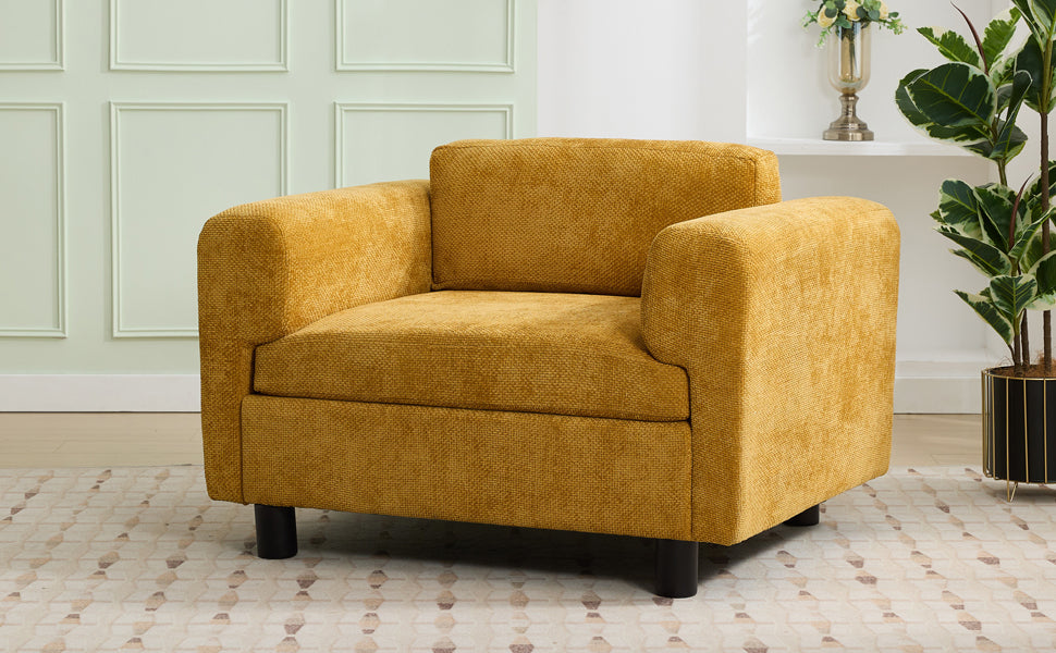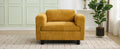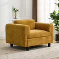 Modern Oversized Armchair Comfy Accent Chair Single Sofa For Living Room Bedroom Office Apartment, Woven Velvet Fabric, Yellow Yellow Wood