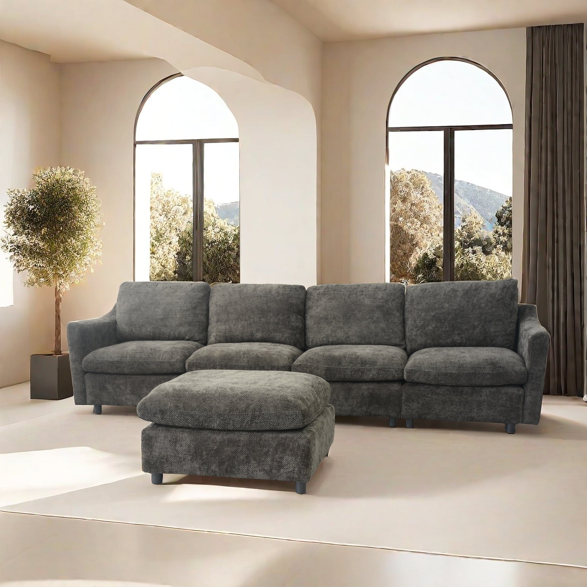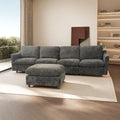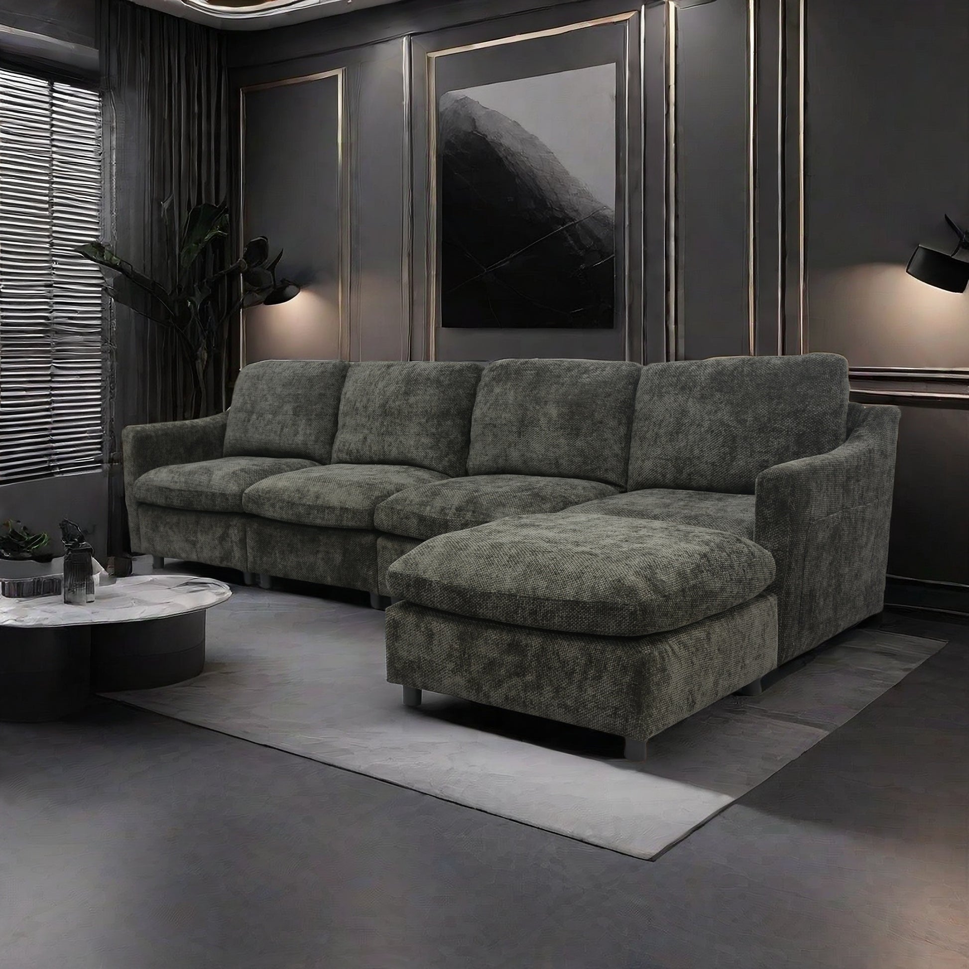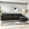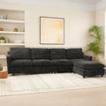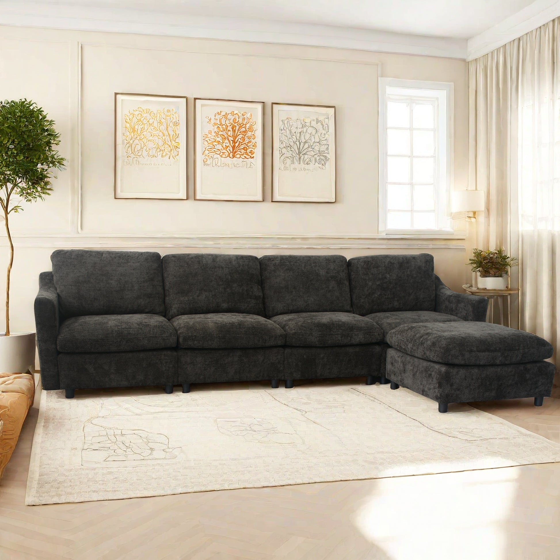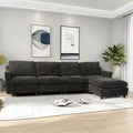 Modern Oversized Deep Seat Sectional Sofa With Reversible Chaise, Loop Yarn Fabric Five Seat Armless Indoor Furniture, Convertible Black L Shaped Couch For Living Room, Apartment, Two Colors Black