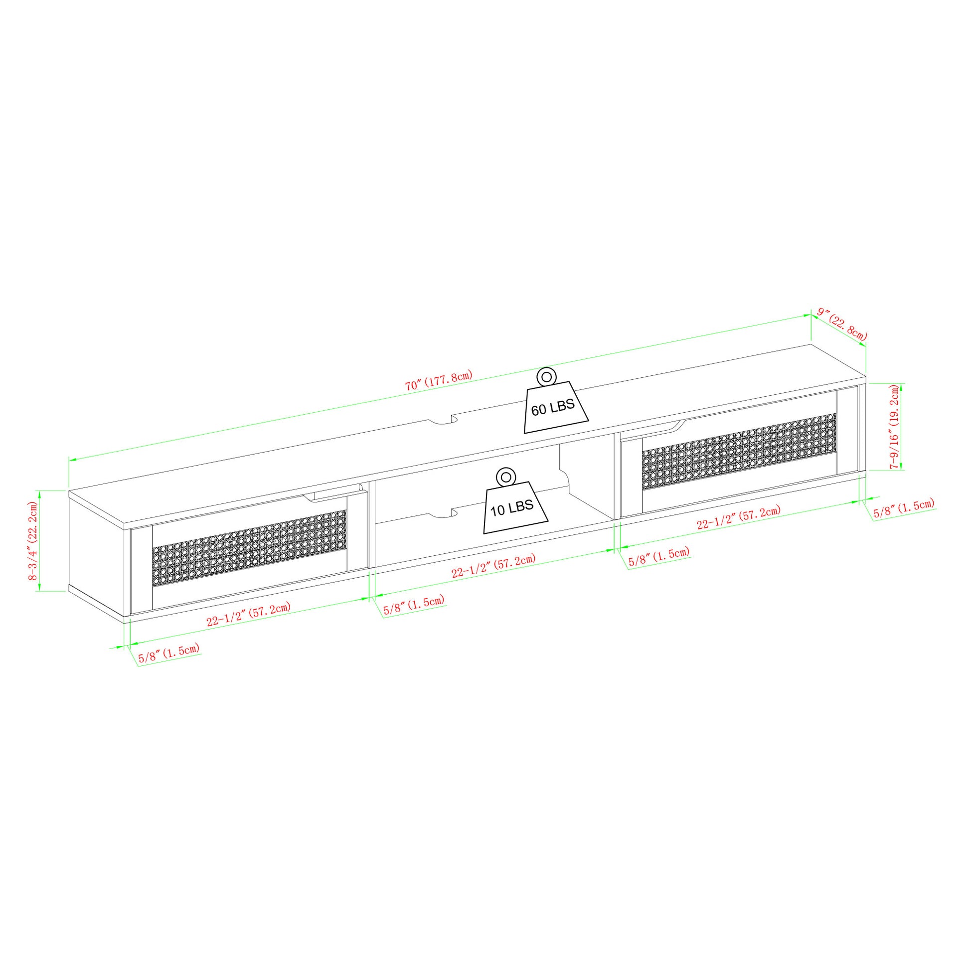 Modern Rattan Door Floating Tv Stand For Tvs Up To 80 Inches Black Black 80 89 Inches Mdf