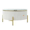 Modern Round Coffee Table With 2 Large Drawers Storage Accent Table 31.5'' Off White Mdf