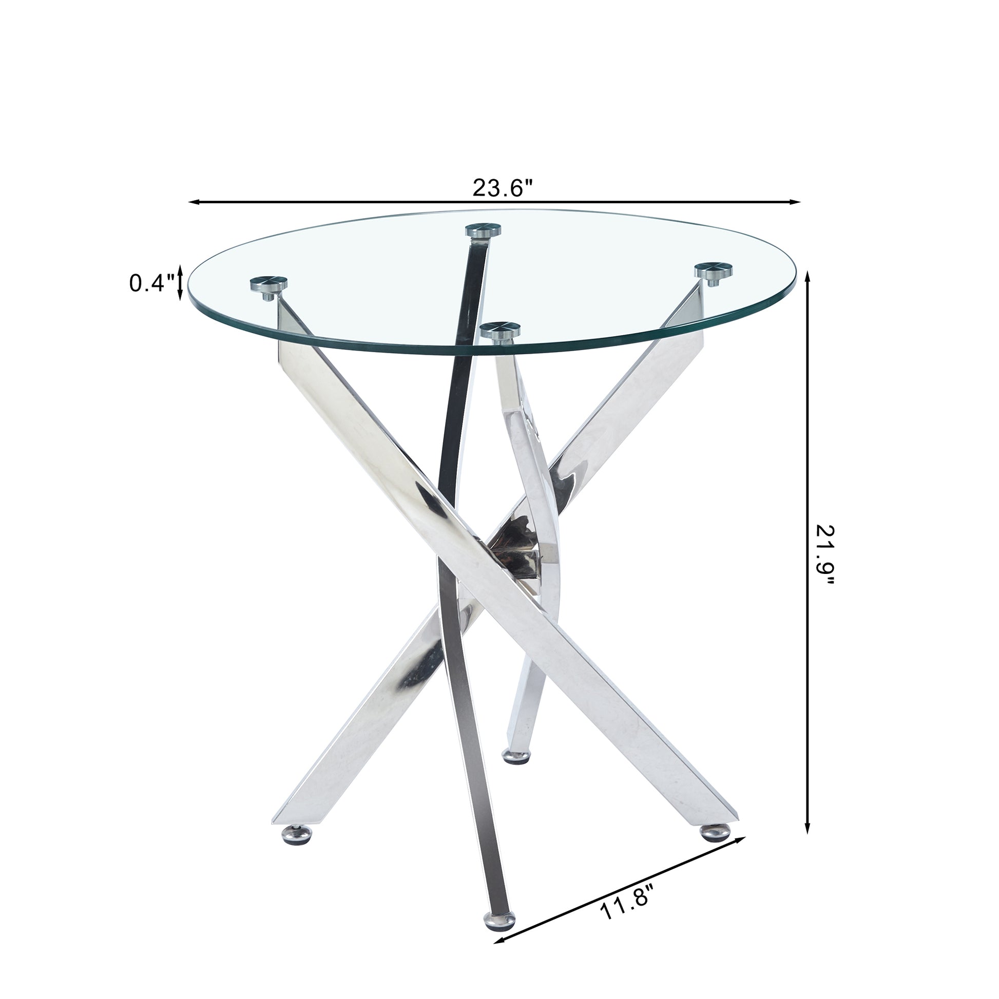 Modern Round Tempered Glass End Table With Chrome Legs Silver Tempered Glass