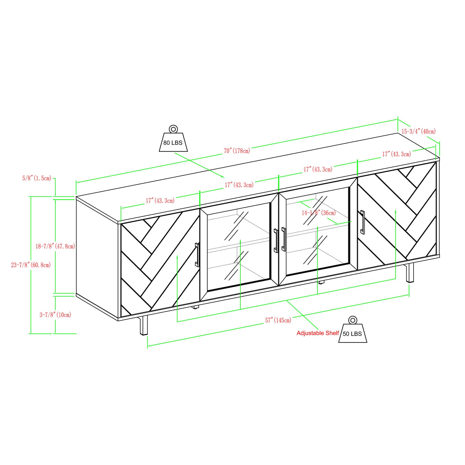 Modern Scandinavian 4 Door Herringbone 70" Tv Stand For Tvs Up To 80" Dark Walnut Dark Brown Mdf