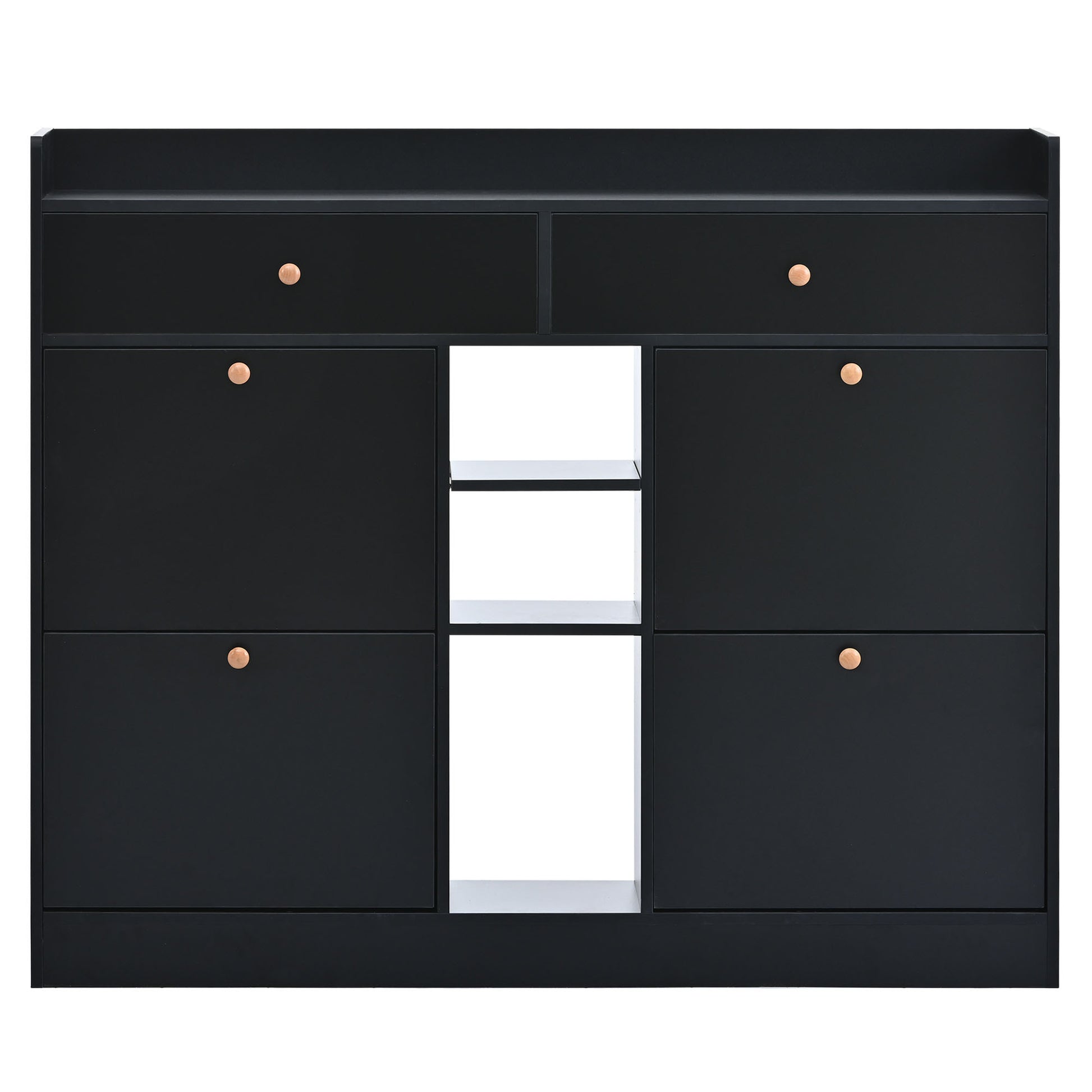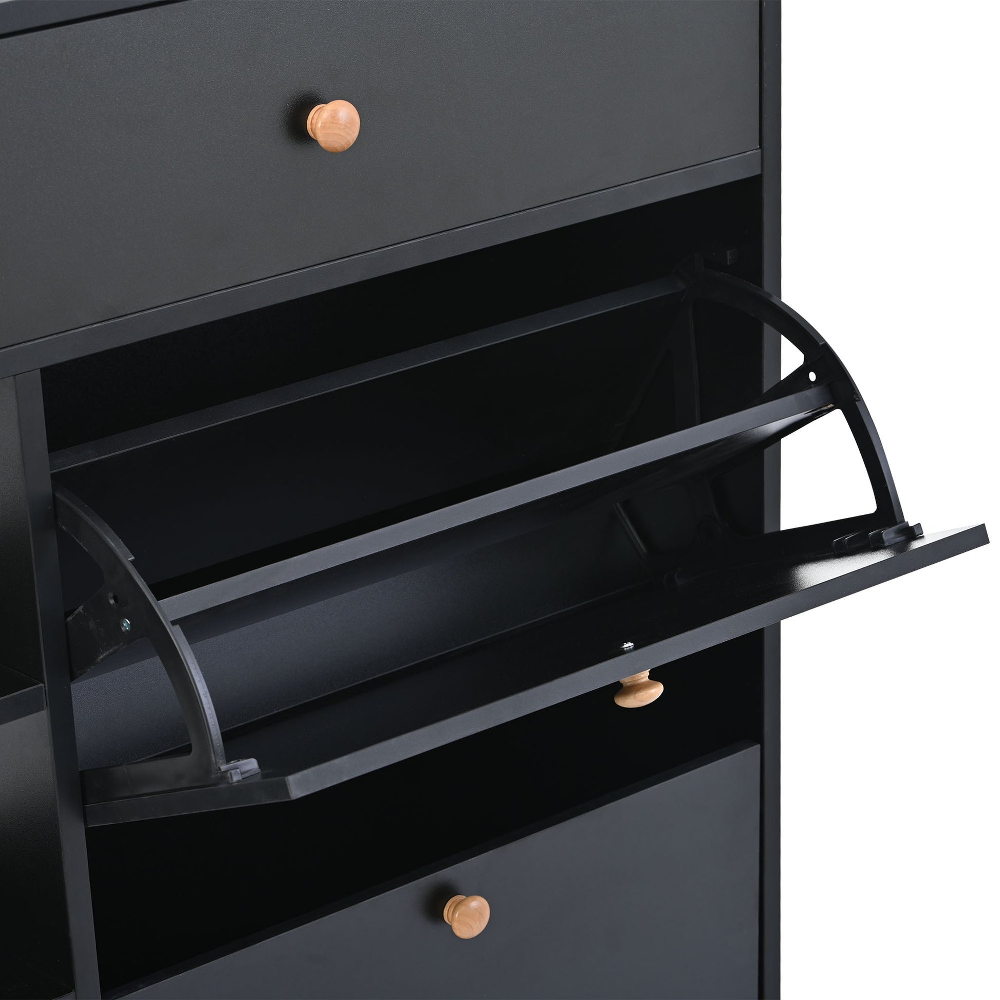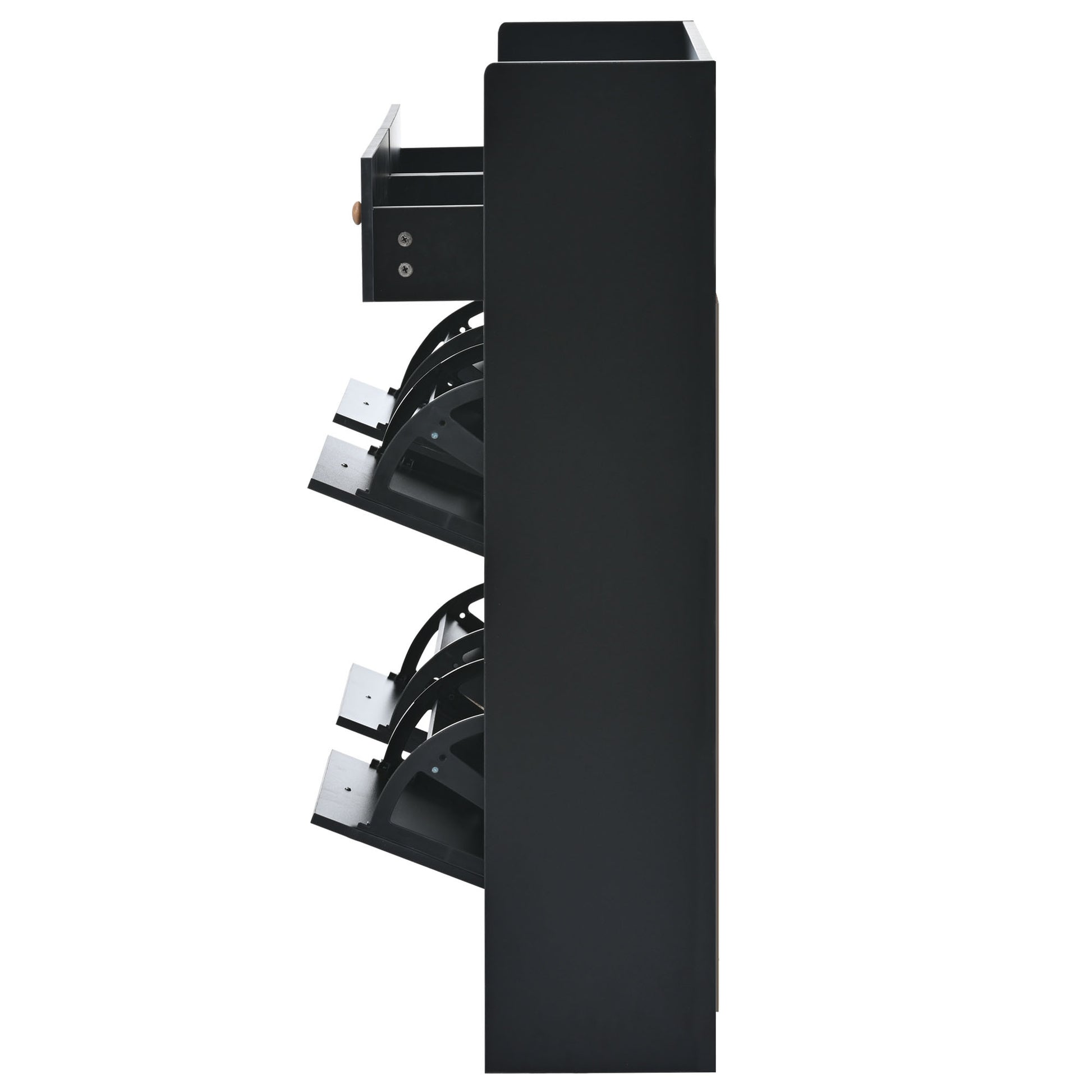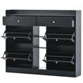 Modern Shoe Cabinet With 4 Flip Drawers, Multifunctional 2 Tier Shoe Storage Organizer With Drawers, Free Standing Shoe Rack For Entrance Hallway, Black. Black Particle Board