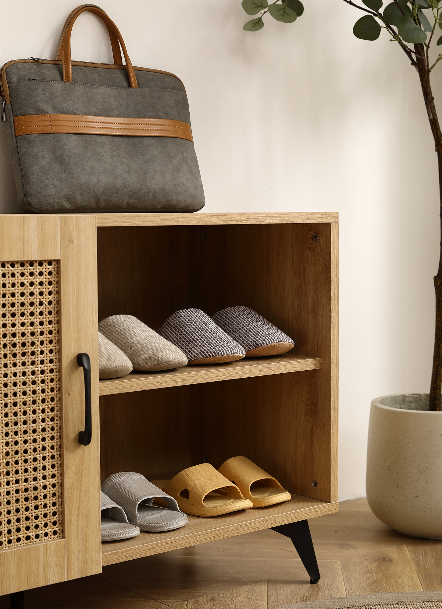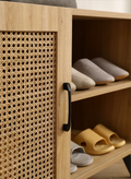 Modern Shoe Storage Cabinet With Natural Rattan Mesh Door And Solid Wooden Handle 39.37Inch Natural Wood Wood