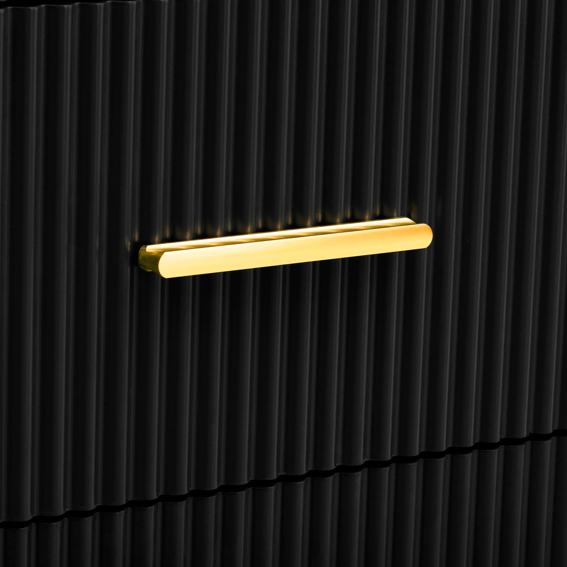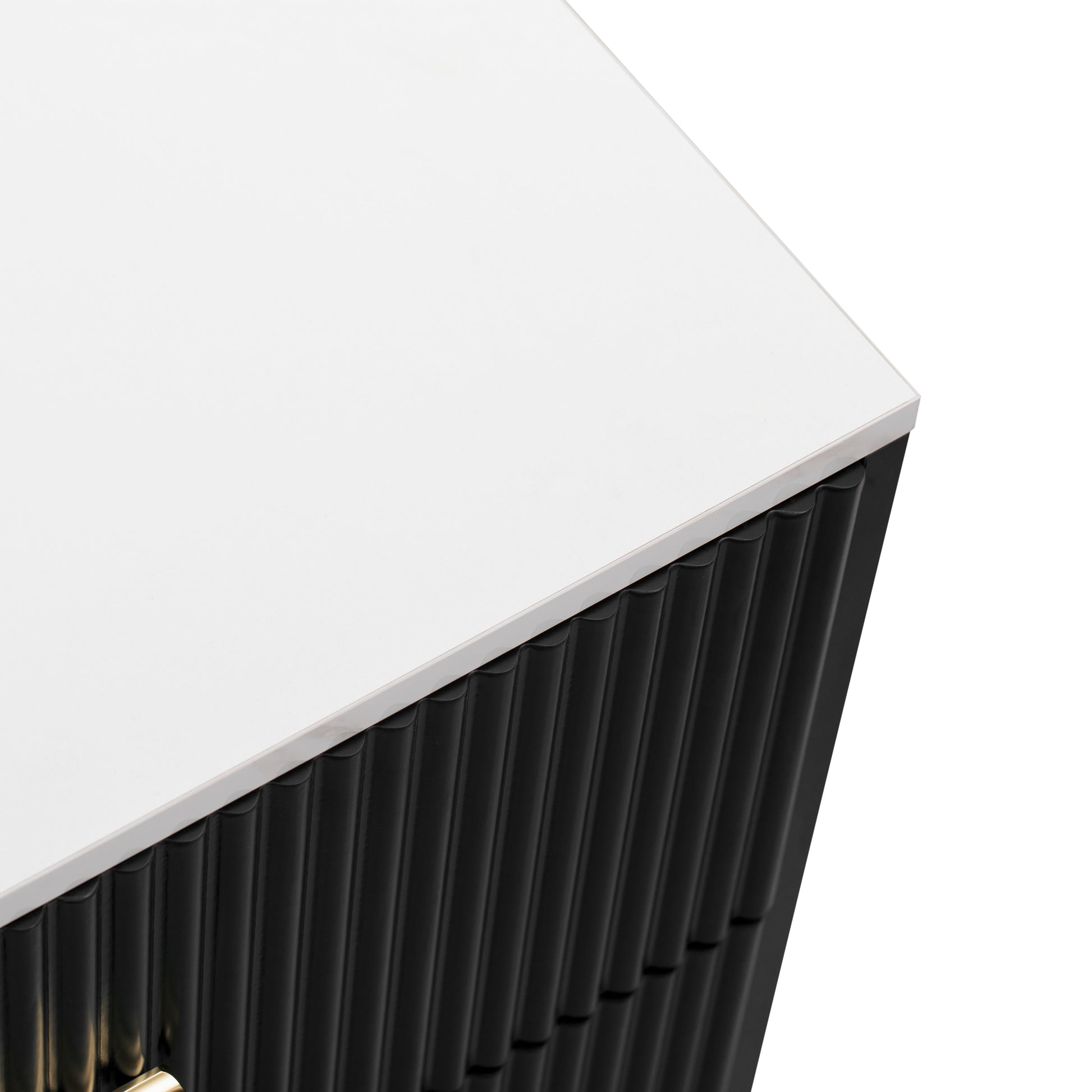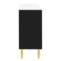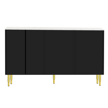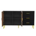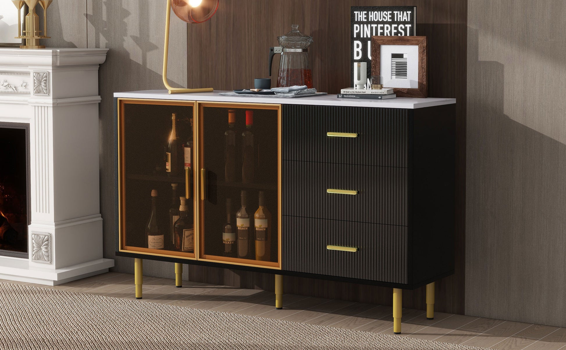 Modern Sideboard Mdf Buffet Cabinet Marble Sticker Tabletop And Amber Yellow Tempered Glass Doors With Gold Metal Legs & Handles Black Black Mdf Glass