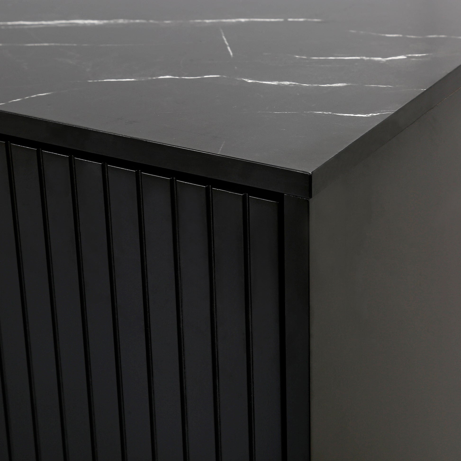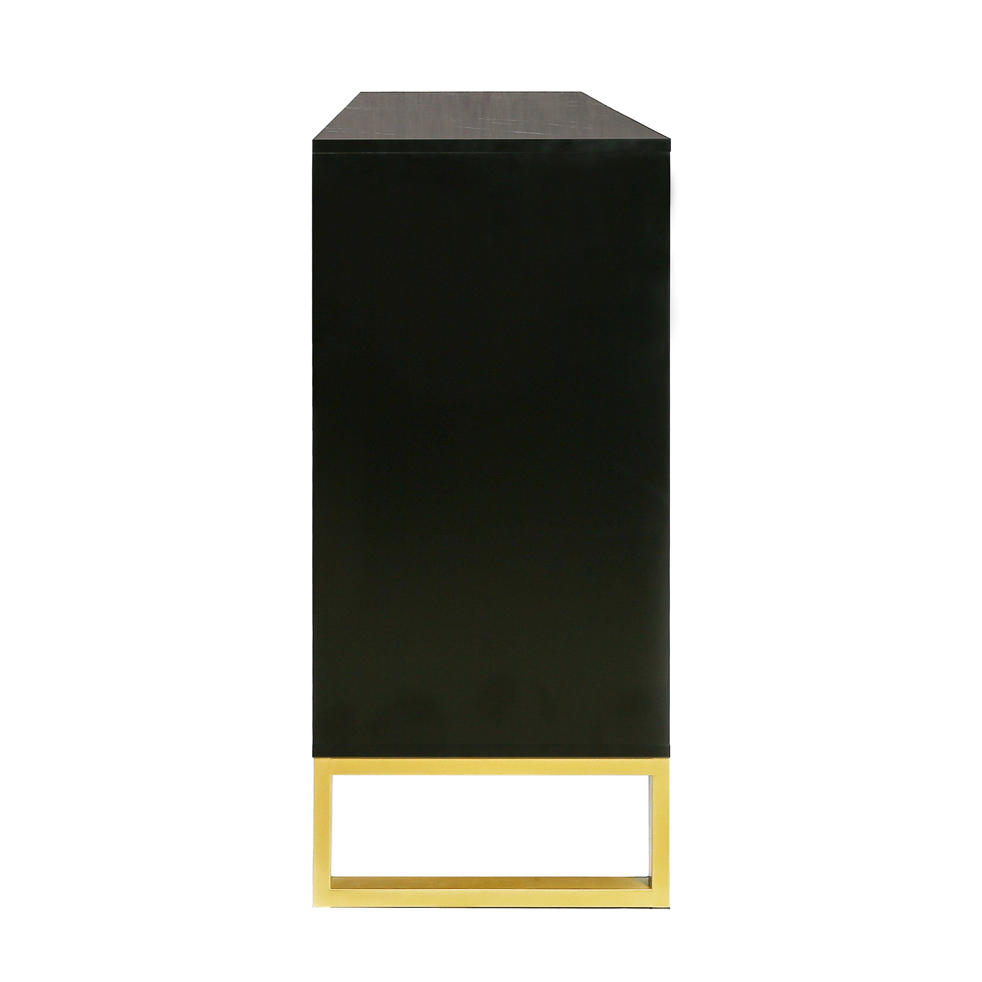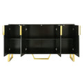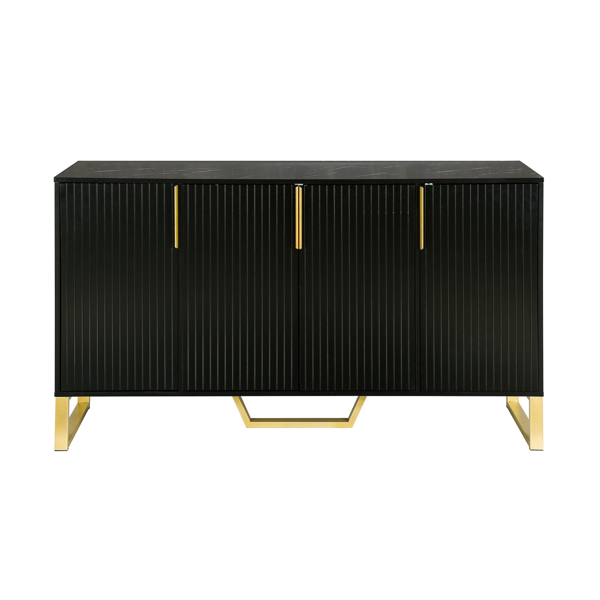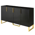 Modern Sideboard With Four Doors, Metal Handles & Legs And Adjustable Shelves Kitchen Cabinet Black Black Particle Board
