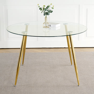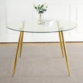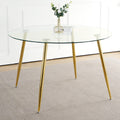 Modern Simple Glass Table, High Quality Tempered Glass Metal Material, Gold Plated Table Legs, Suitable For Restaurant Kitchen Set Of 1 Gold Round Glass