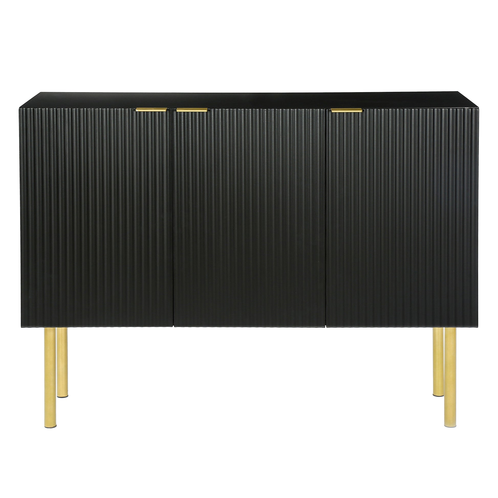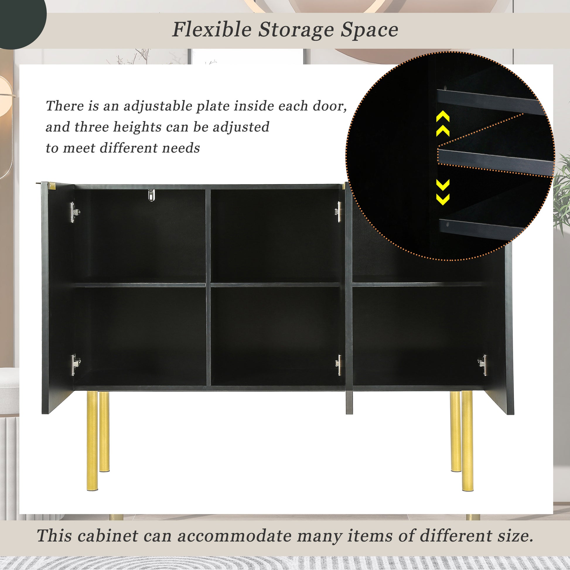 Modern Simple & Luxury Style Sideboard Particle Board & Mdf Board Cabinet With Gold Metal Legs & Handles, Adjustable Shelves For Living Room, Dining Room Black Black Particle Board