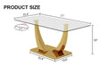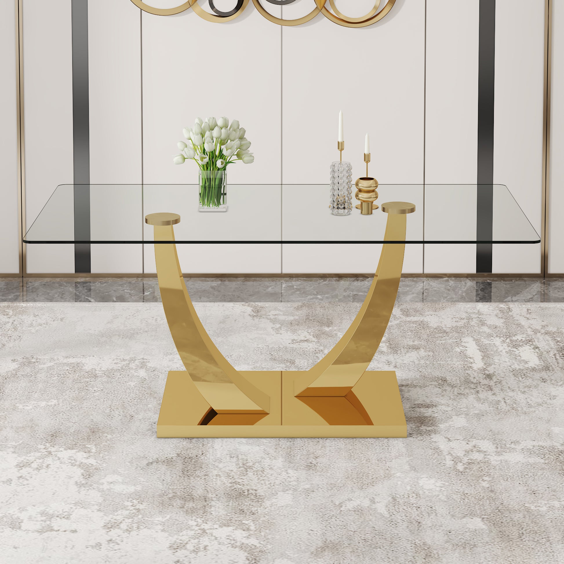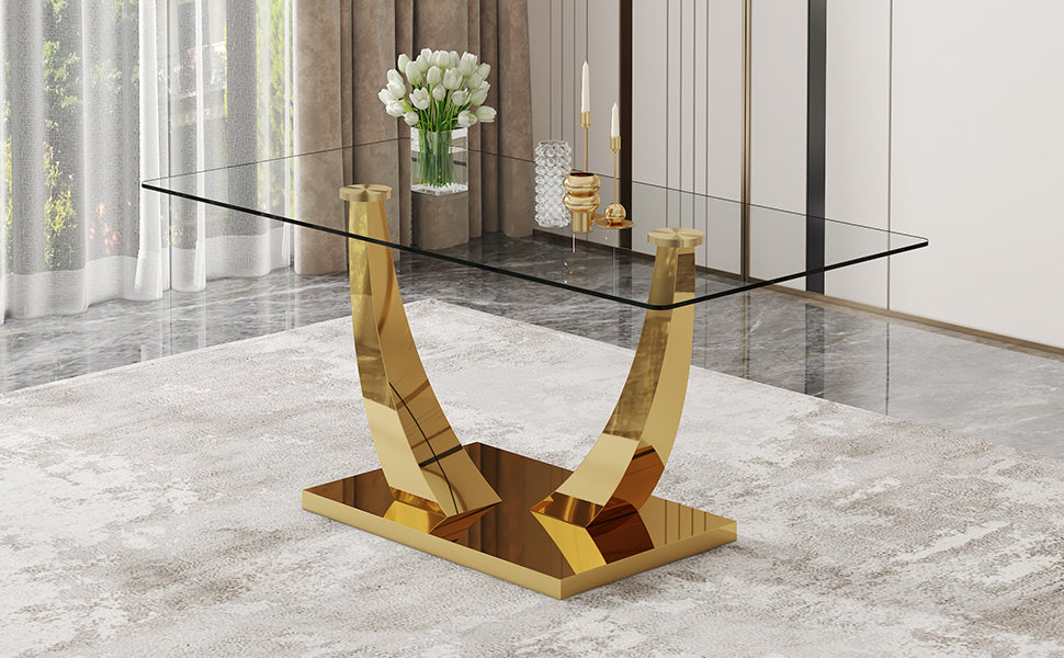 Modern Simple Rectangular Dining Table With Clear Glass Top And Smooth Gold Legs. Suitable For Kitchen, Dining Room And Living Room. Golden Glass