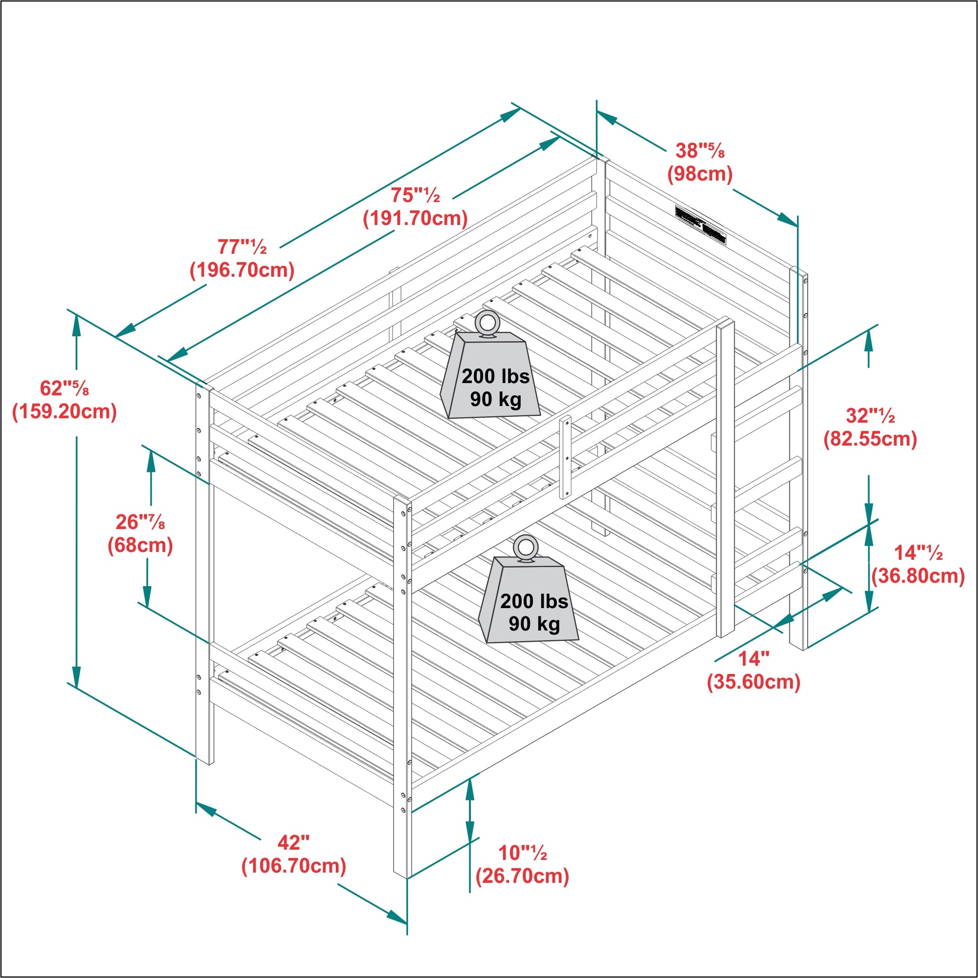 Modern Simple Solid Wood Twin Over Twin Bunk Bed, Olive Green Olive Green Pine Pine