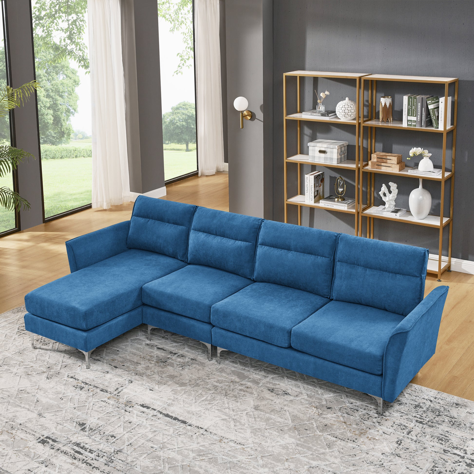 Modern Sofa 3 Seat Couch With Stainless Steel Trim And Metal Legs For Living Room,Package Compression Sofa Technology,Navy Blue Navy Blue Foam 5 Seat