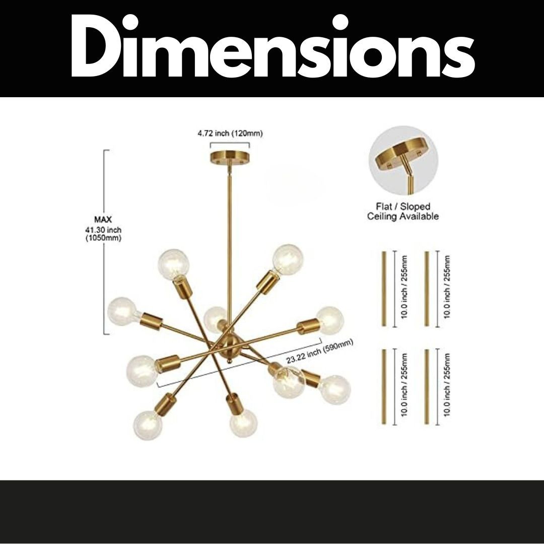 Modern Sputnik Chandelier Lighting 10 Lights With Adjustable Arms Brushed Brass Pendant Lighting Brushed Gold Metal