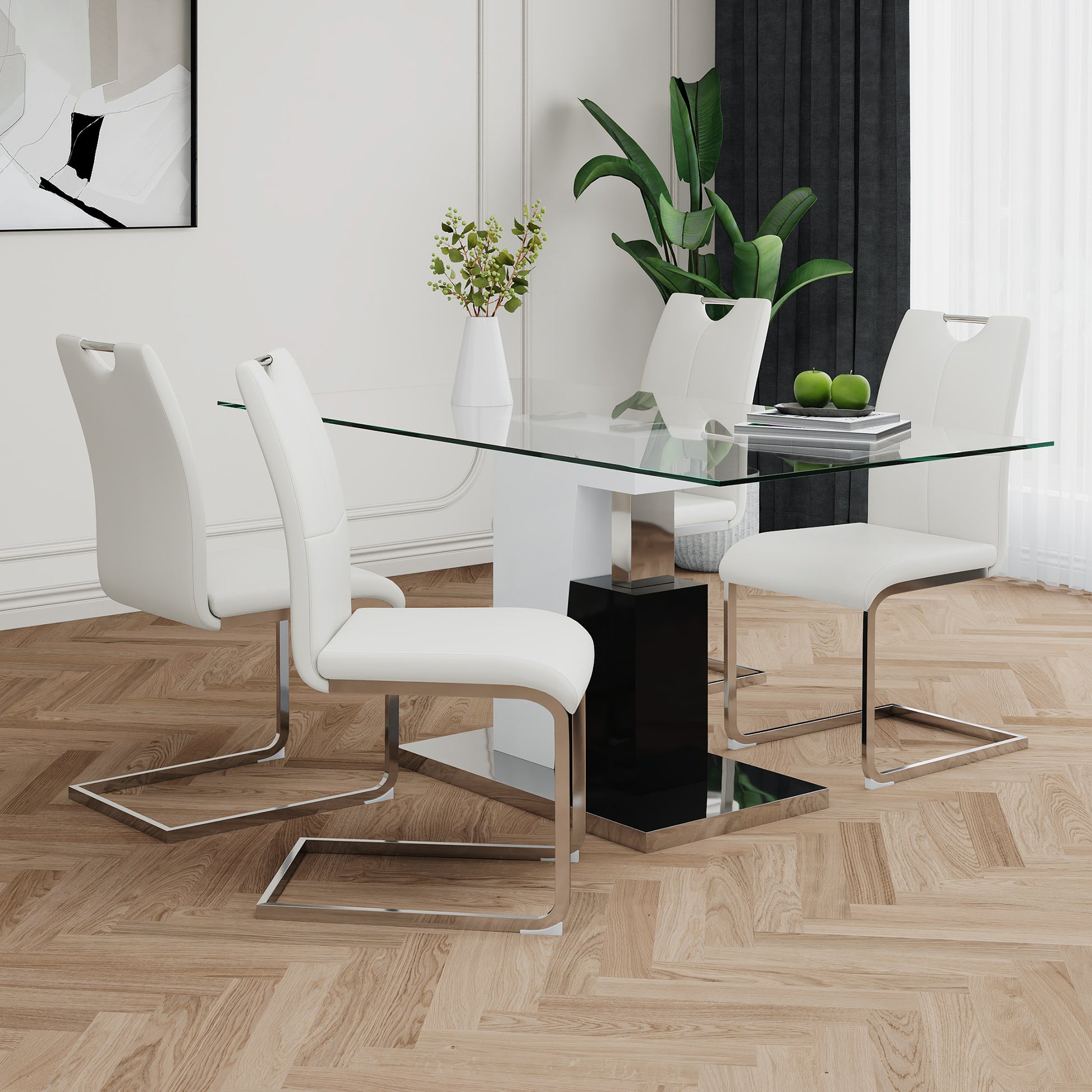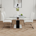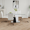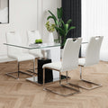 Modern Style Glass Table, Elegant Transparent Design, Durable Support Base, White Dining Chair Set, Electroplated Chair Legs, Suitable For Restaurant Kitchens Set Of 5 White Seats 4 Tempered Glass