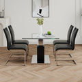Modern Style Glass Table, Elegant Transparent Design, Durable Support Base, Black Dining Chair Set, Electroplated Chair Legs, Suitable For Restaurant Kitchens Set Of 5 Black Seats 4 Tempered Glass
