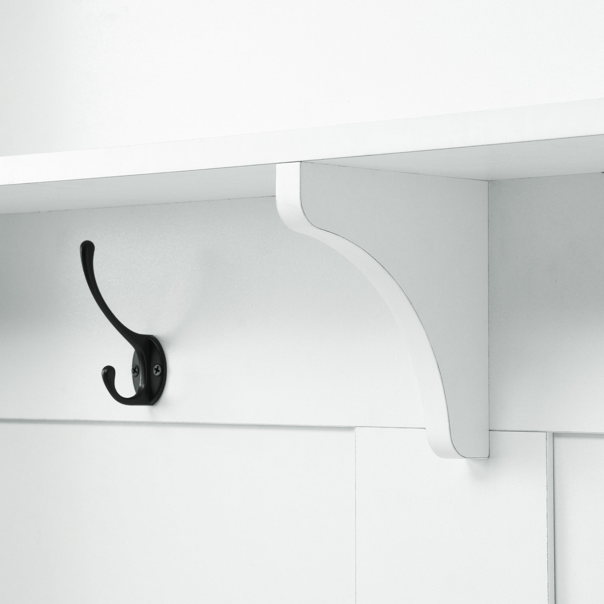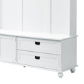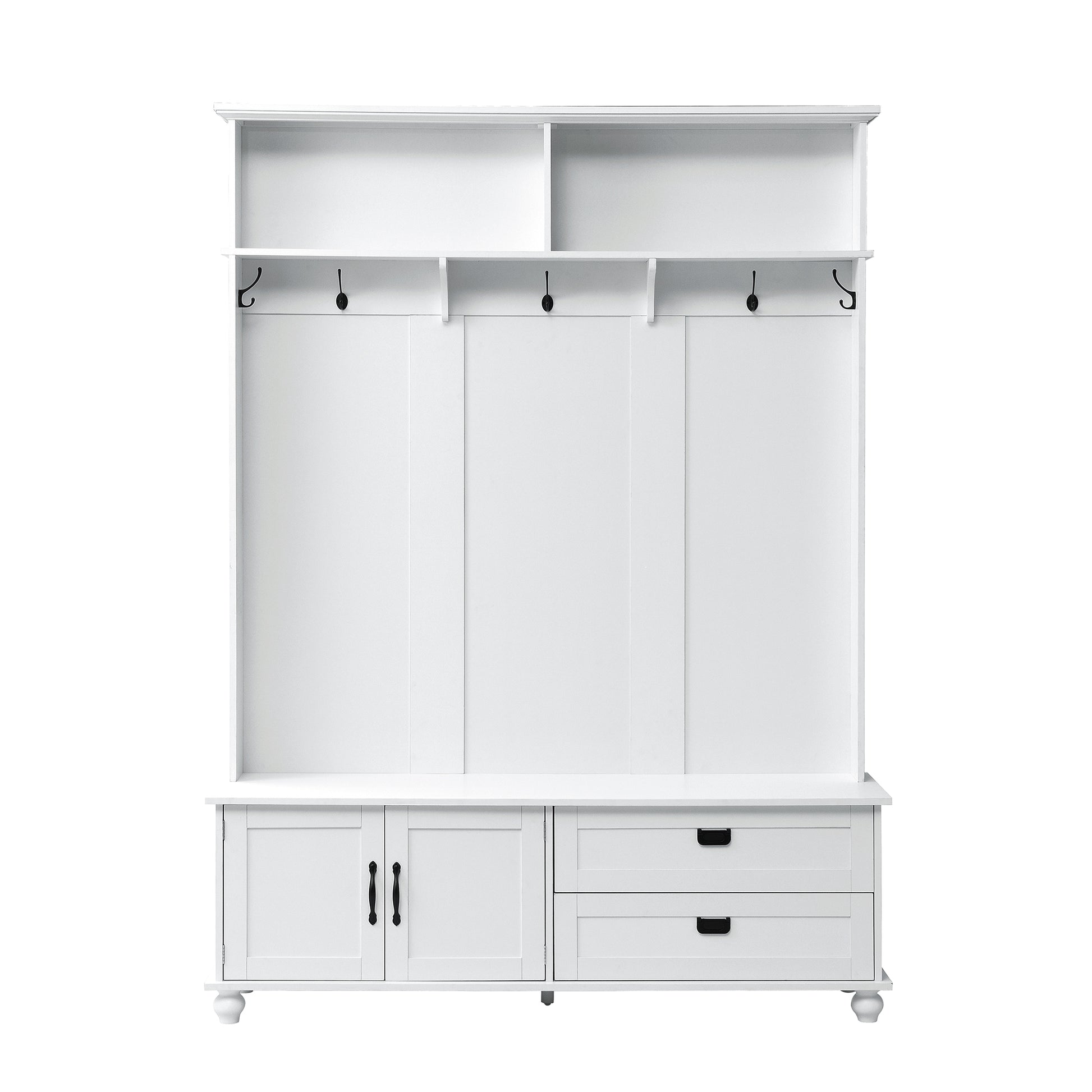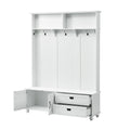 Modern Style Hall Tree With Storage Cabinet And 2 Large Drawers, Widen Mudroom Bench With 5 Coat Hooks, White White Primary Living Space Particle Board