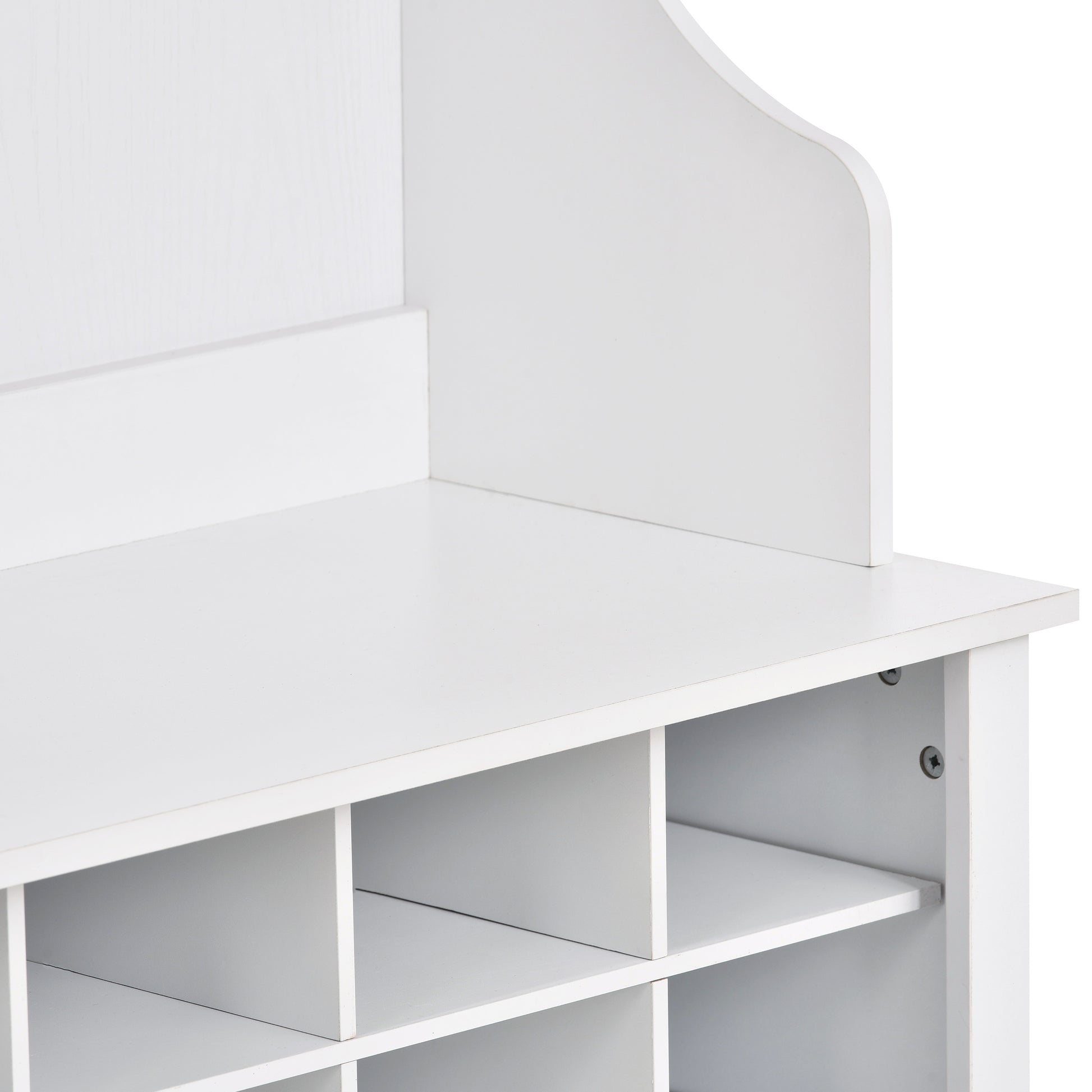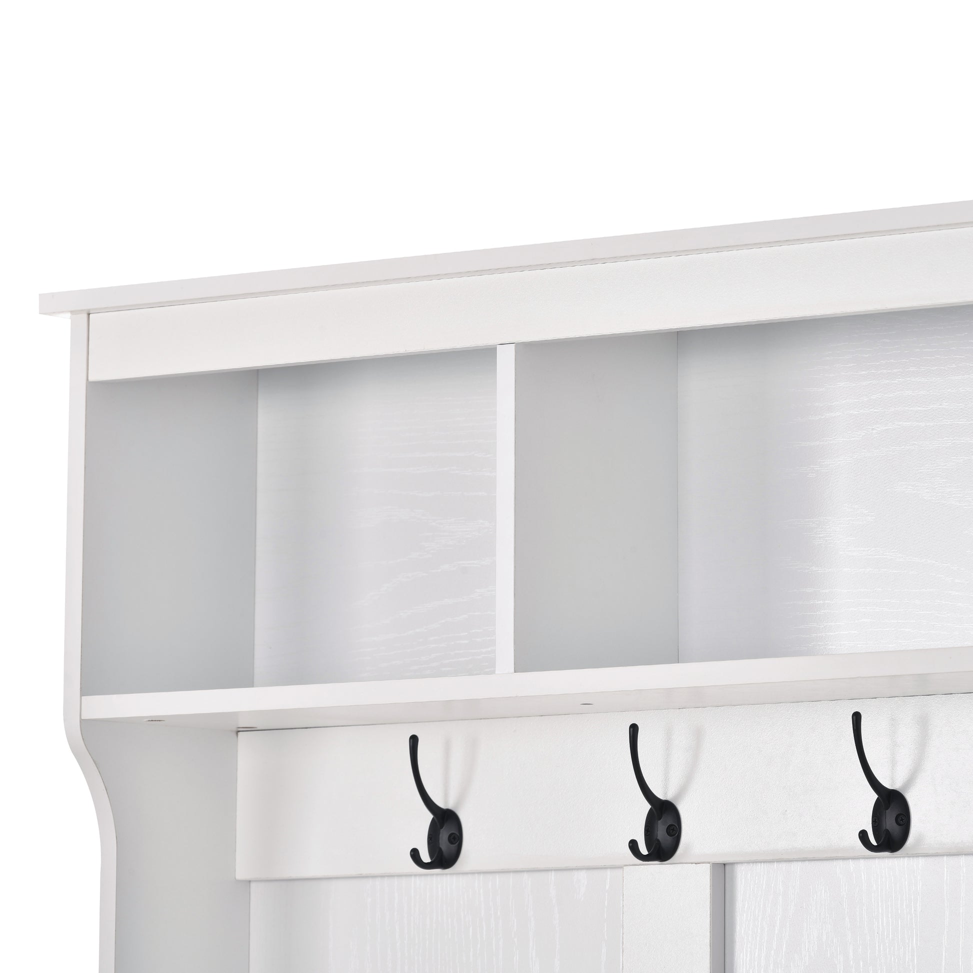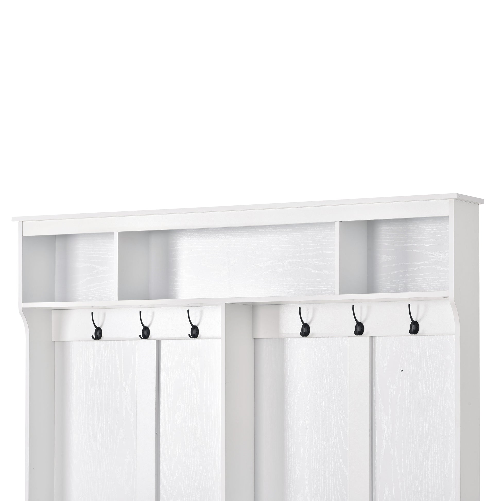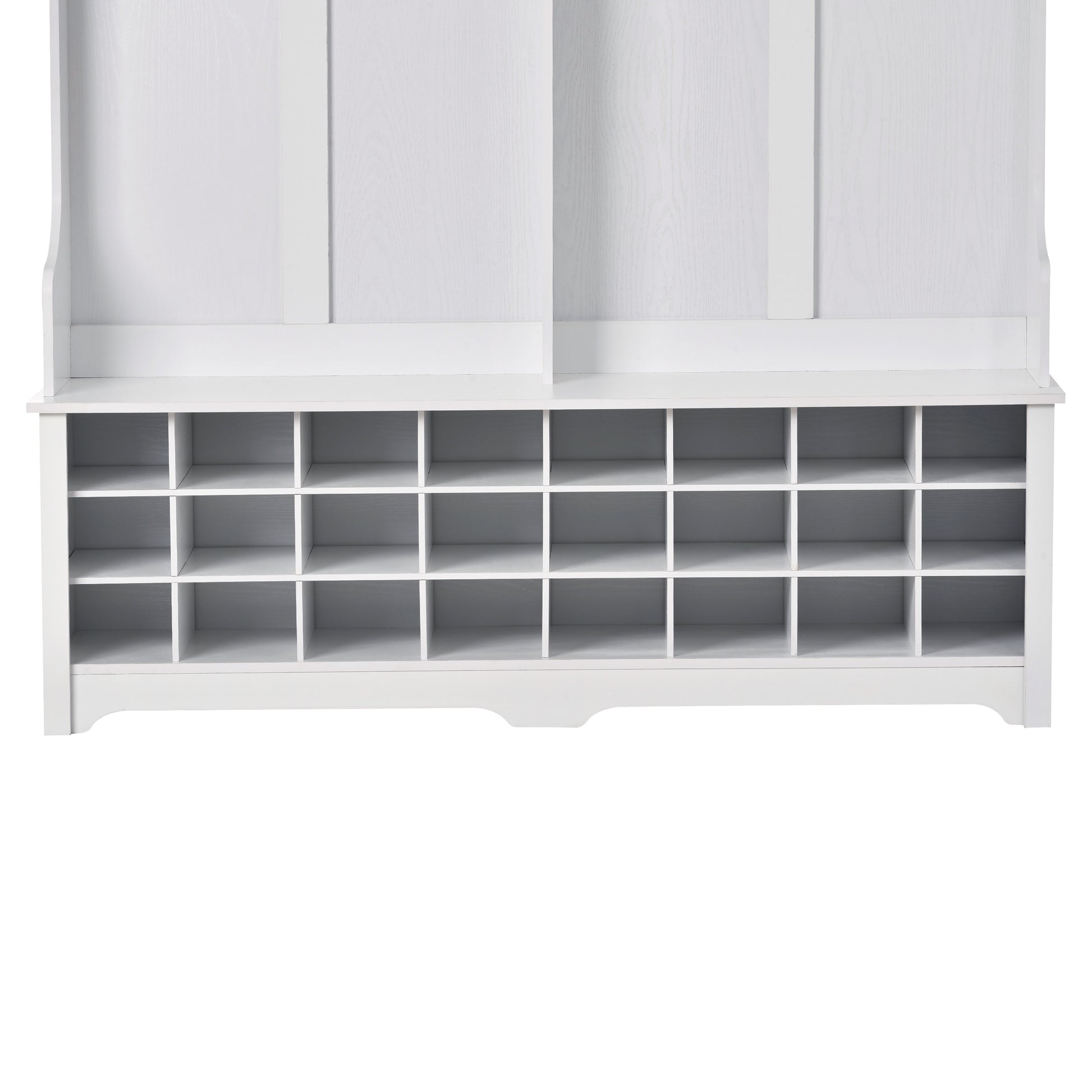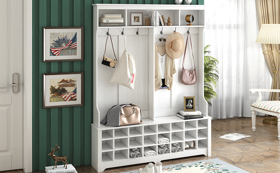 Modern Style Multiple Functions Hallway Coat Rack With Metal Black Hooks, Entryway Bench 60" Wide Hall Tree With Large Storage Space And 24 Shoe Cubbieswhite Old Sku: Wf286983Aak White Mdf