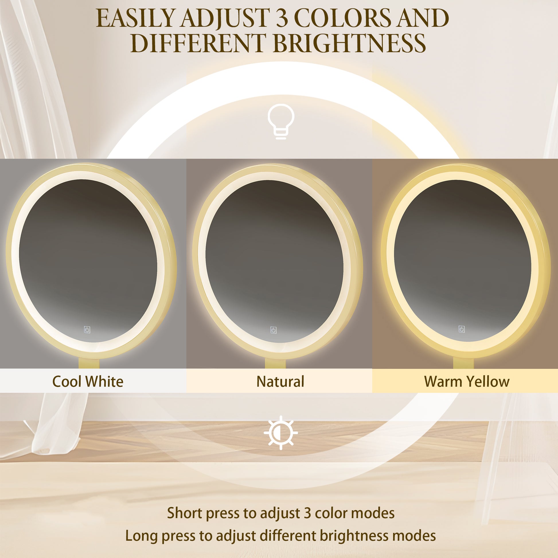 Modern Style Vanity Table With Movable Side Cabinet And 4 Drawers, Large Size Dressing Table With Mirror And 3 Colors Led Light, Makeup Table With Stool, White, Lden Legs Gold White 4 Drawers Mdf Metal