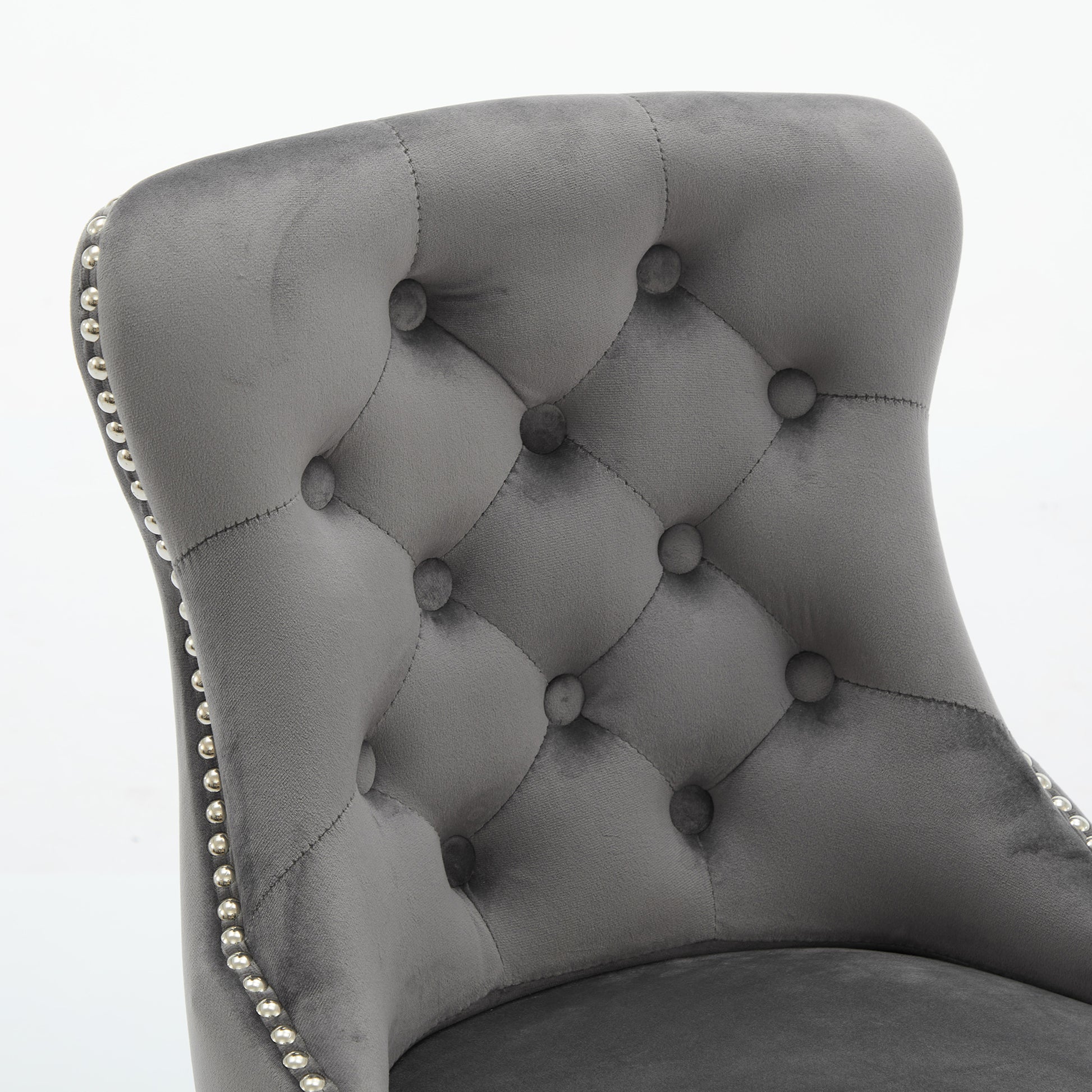 Modern Swivel Bar Stools Velvet Barstools Button Tufted Bar Stools Rivet Trim Bar Stools For Kitchen Island,Bistro, With Metal Pull Ring Sturdy Footrest Large Backrest For Home Bar,Dark Gray 2Pcs