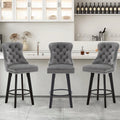 Modern Swivel Bar Stools Velvet Barstools Button Tufted Bar Stools Rivet Trim Bar Stools For Kitchen Island,Bistro, With Metal Pull Ring Sturdy Footrest Large Backrest For Home Bar,Dark Gray 3 Dark