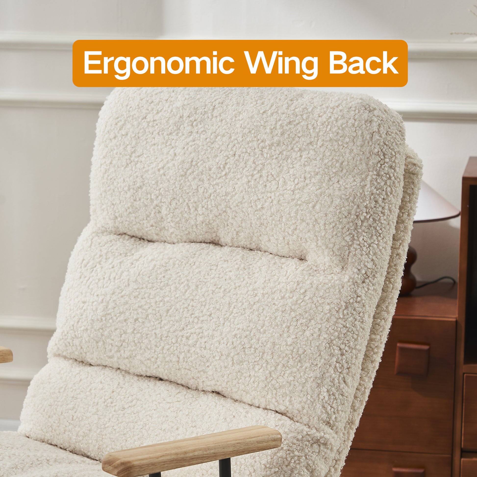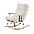 Modern Teddy Gliding Rocking Chair With High Back, Retractable Footrest, And Adjustable Back Angle For Nursery, Living Room, And Bedroom,Beige Beige Fabric