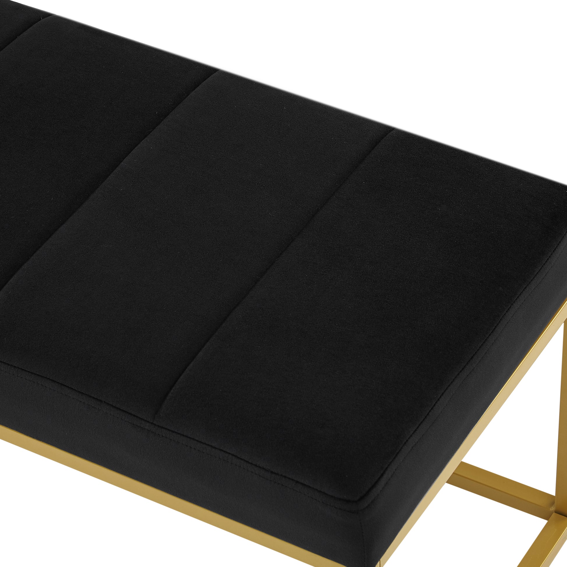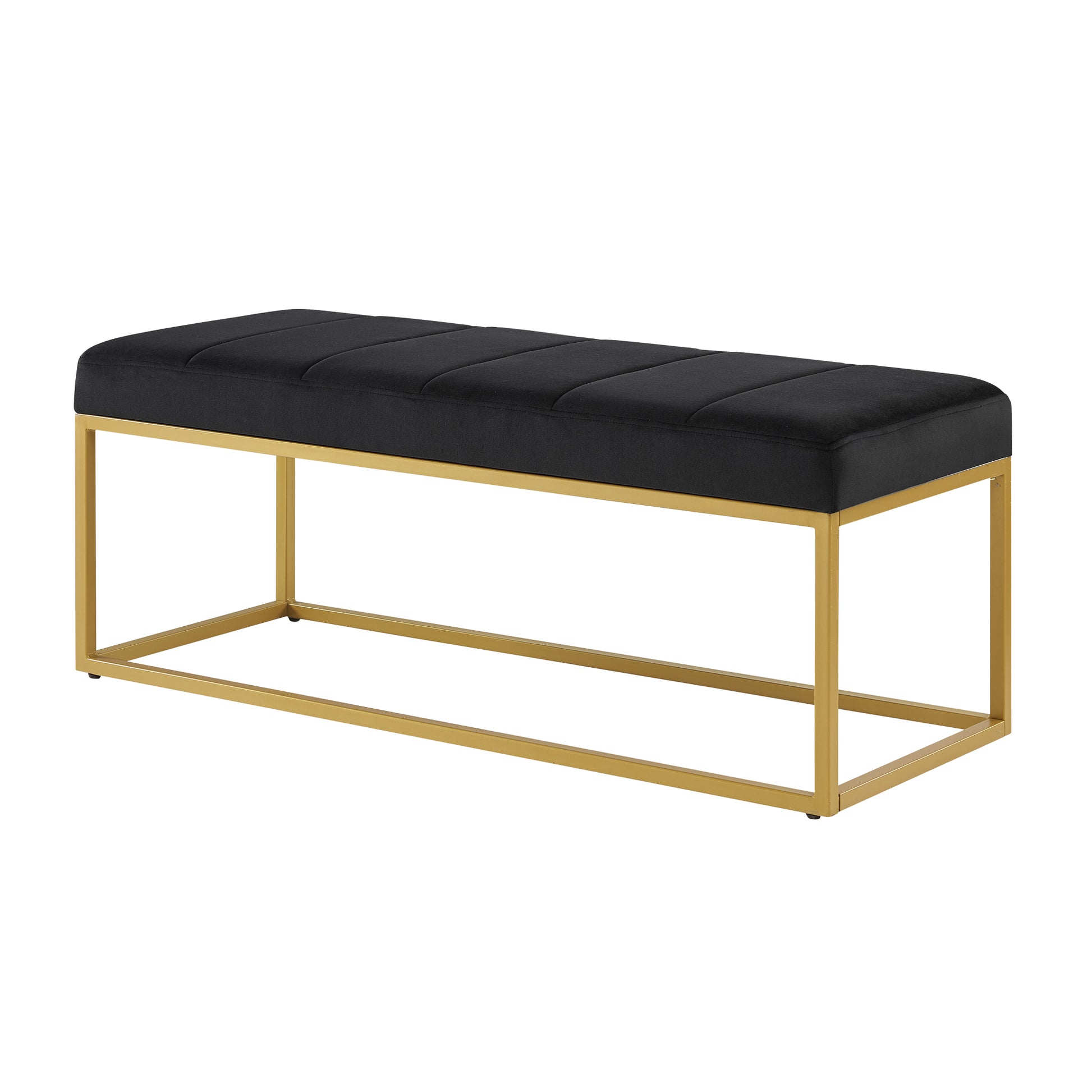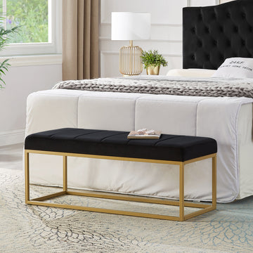Modern Tufted Channel Entryway Bench Emerald Velvet Upholstered End Of Bed Bench With Metal Frame,Footboard Bench For Living Room, Bedroom Black Foam Velvet