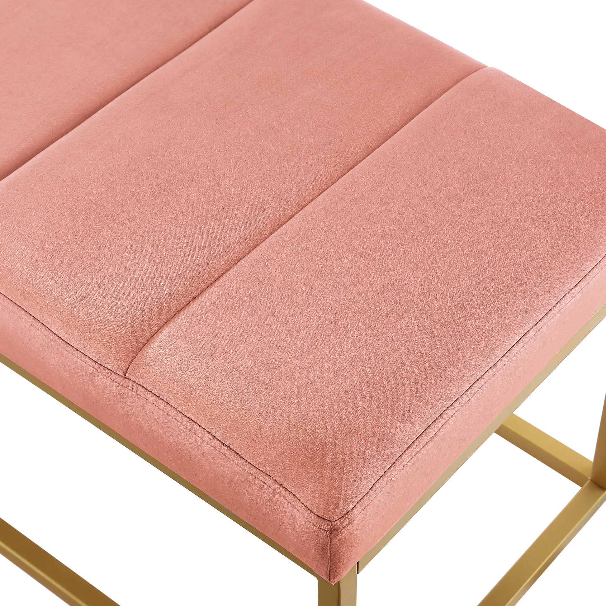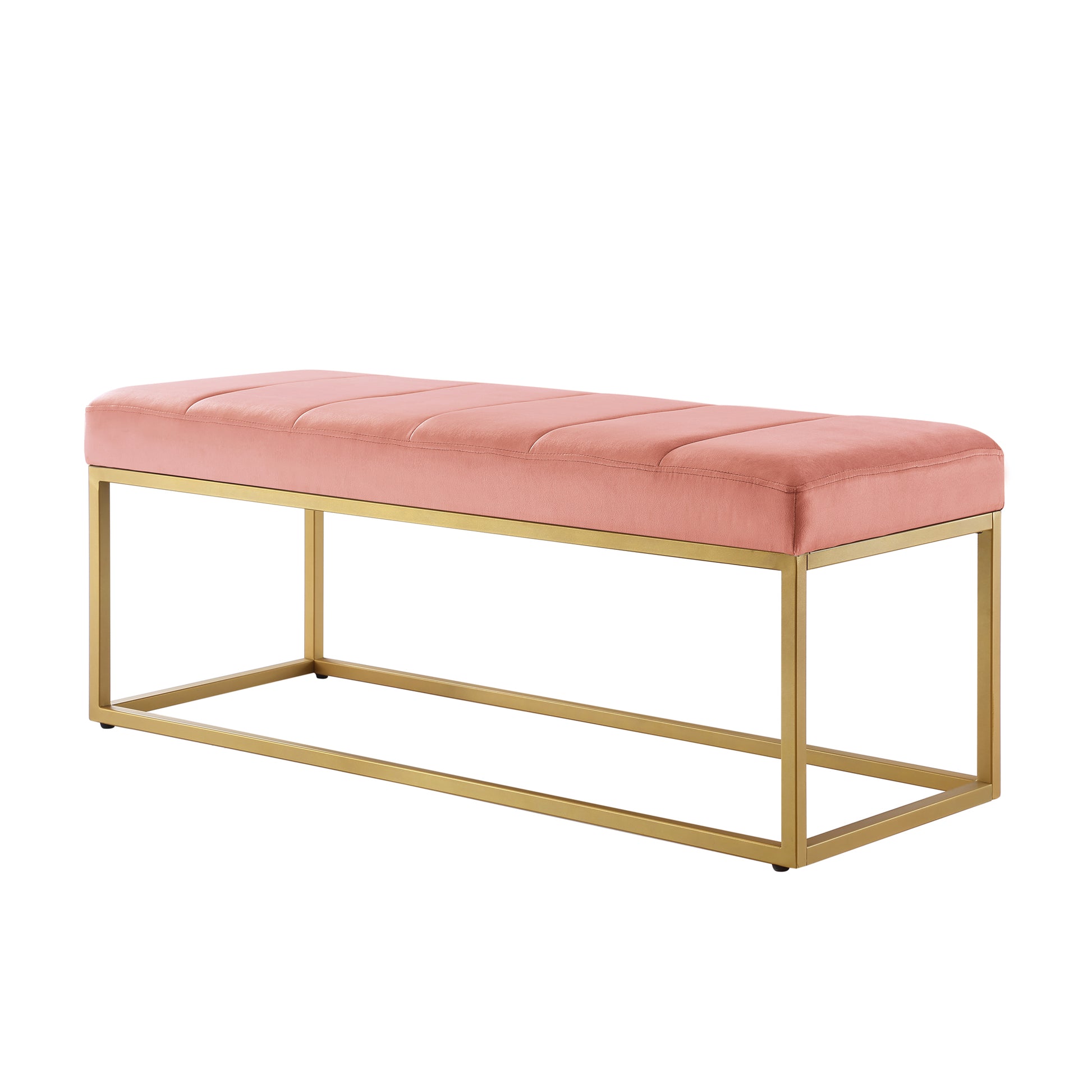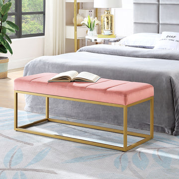 Modern Tufted Channel Entryway Bench Emerald Velvet Upholstered End Of Bed Bench With Metal Frame,Footboard Bench For Living Room, Bedroom Blush Foam Velvet